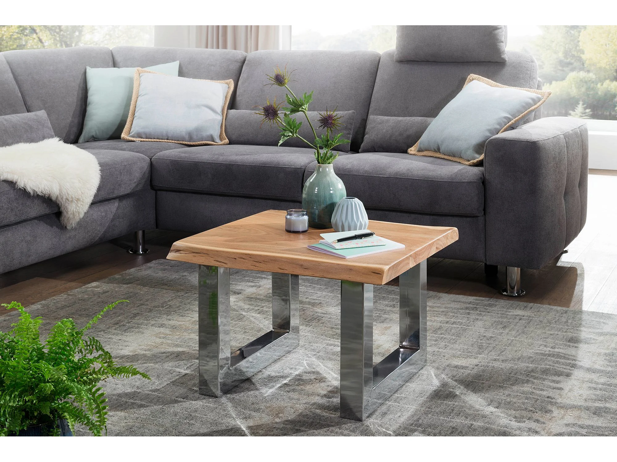 Table basse de ASURA 58 x 40 x 60 cm Structure métallique en bois massif Acacia Brown | Tronc