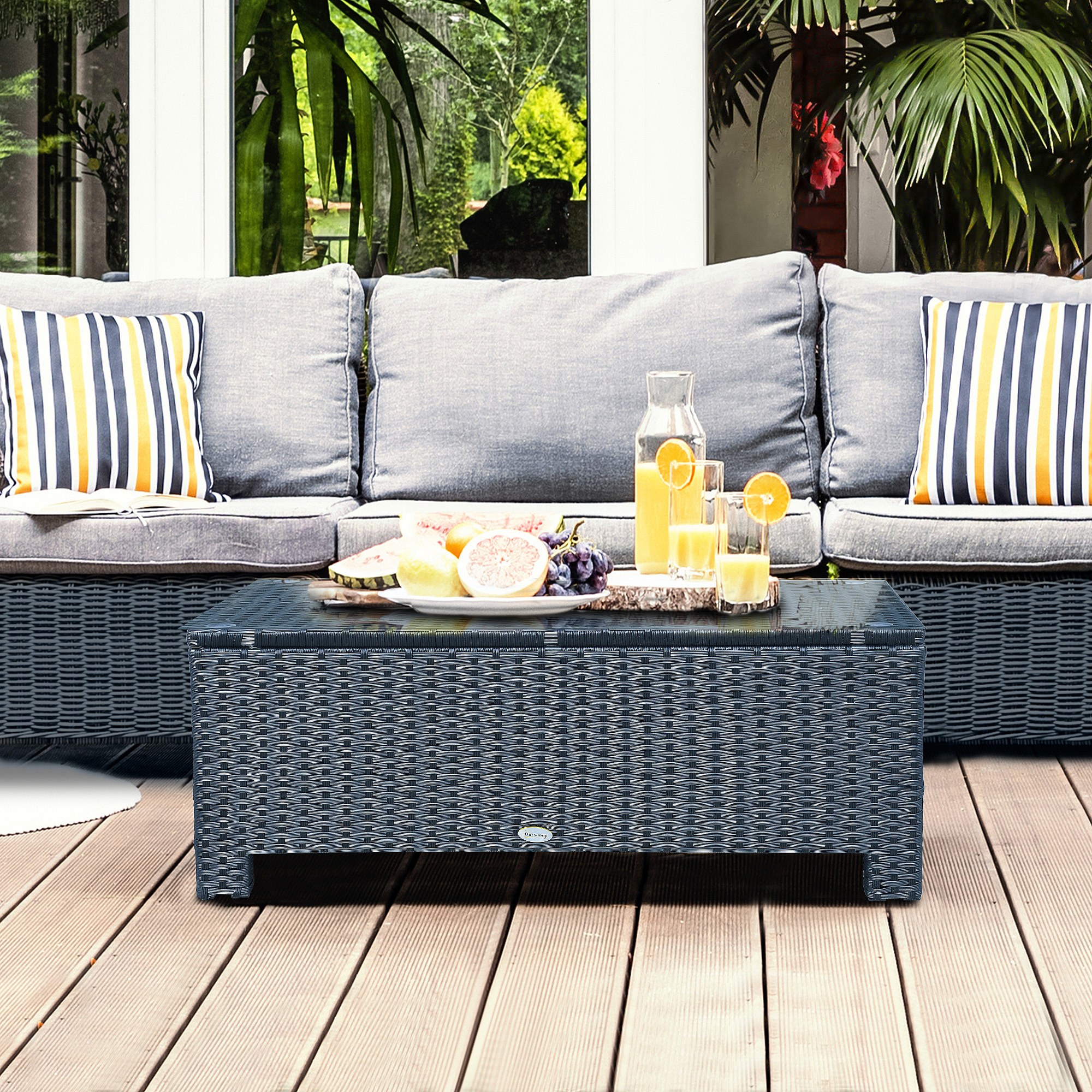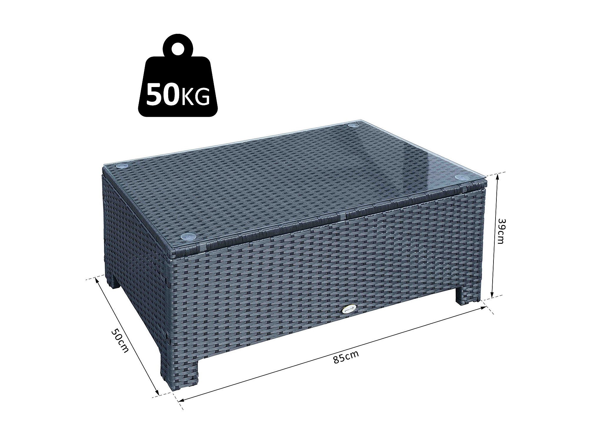 Table basse de jardin plateau verre trempé 5 mm rotin tressé 85 x 50 x 39cm Max. 50 kg noir