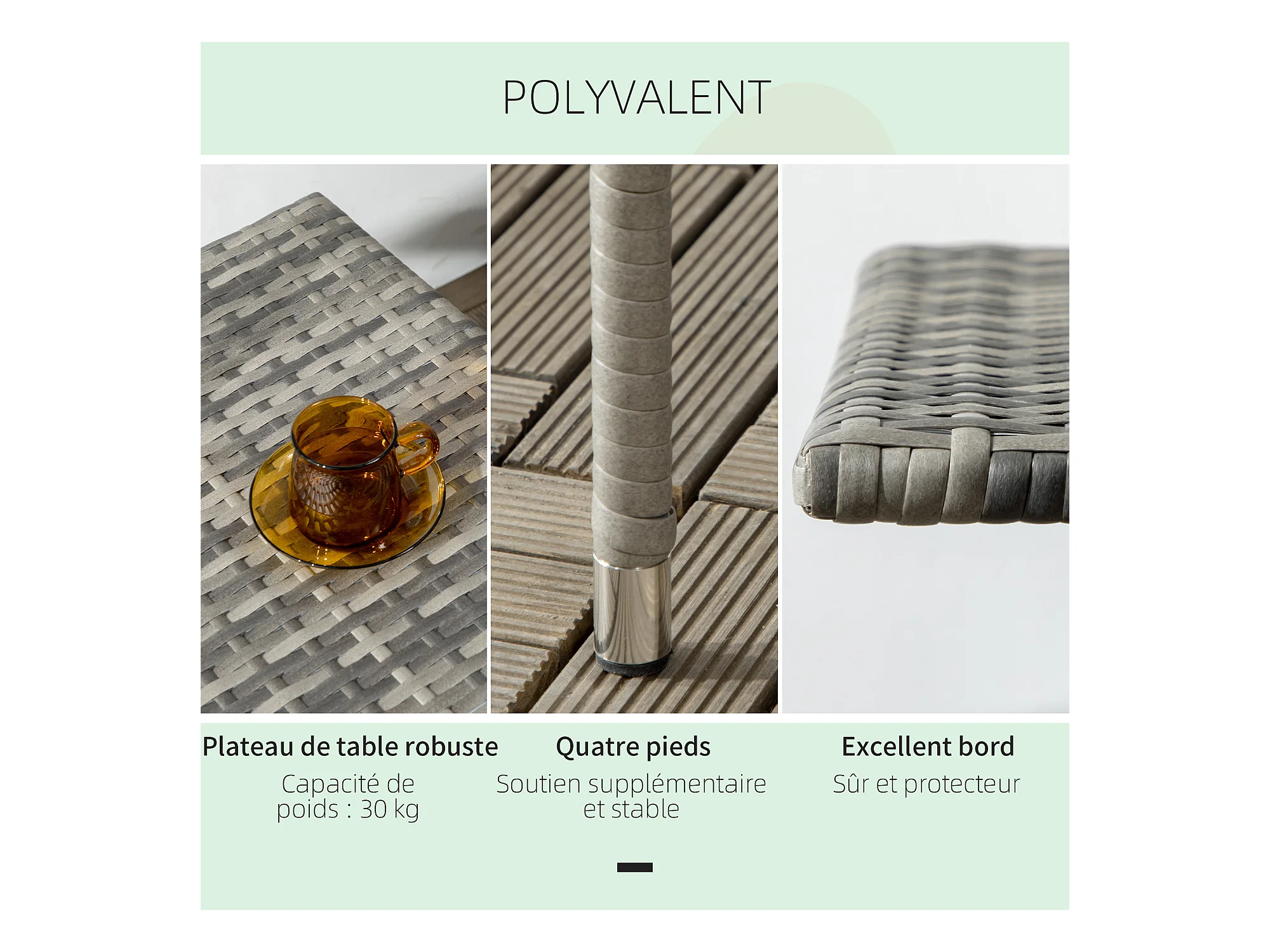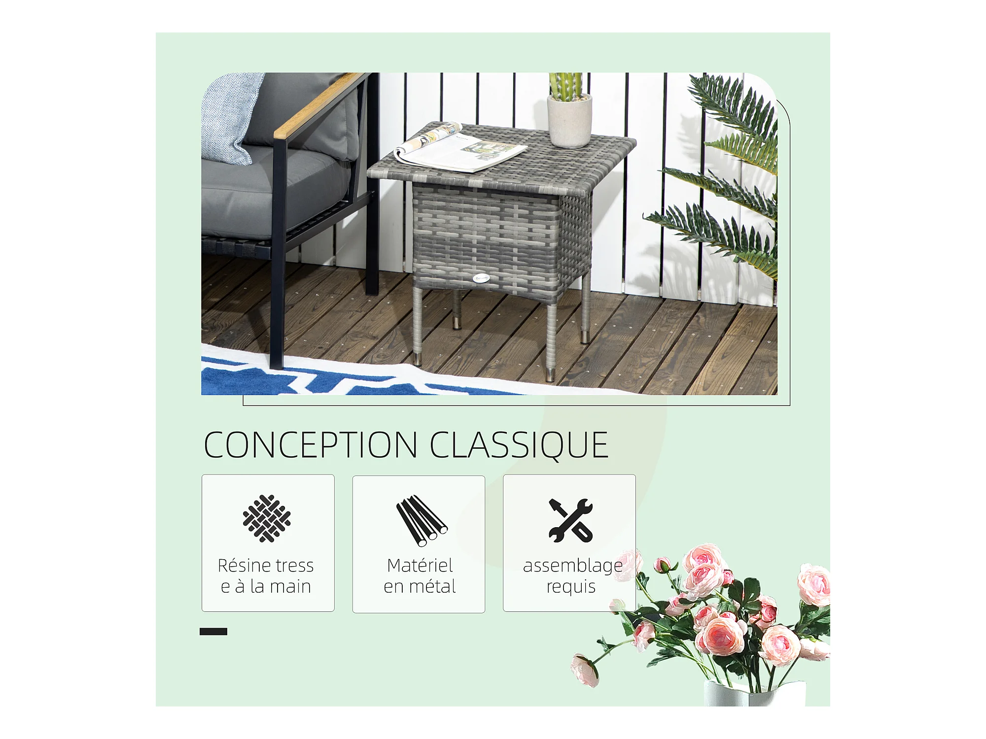 Table basse de jardin style cosy chic dim. 50L x 50l x 47H cm métal époxy résine tressée aspect rotin gris