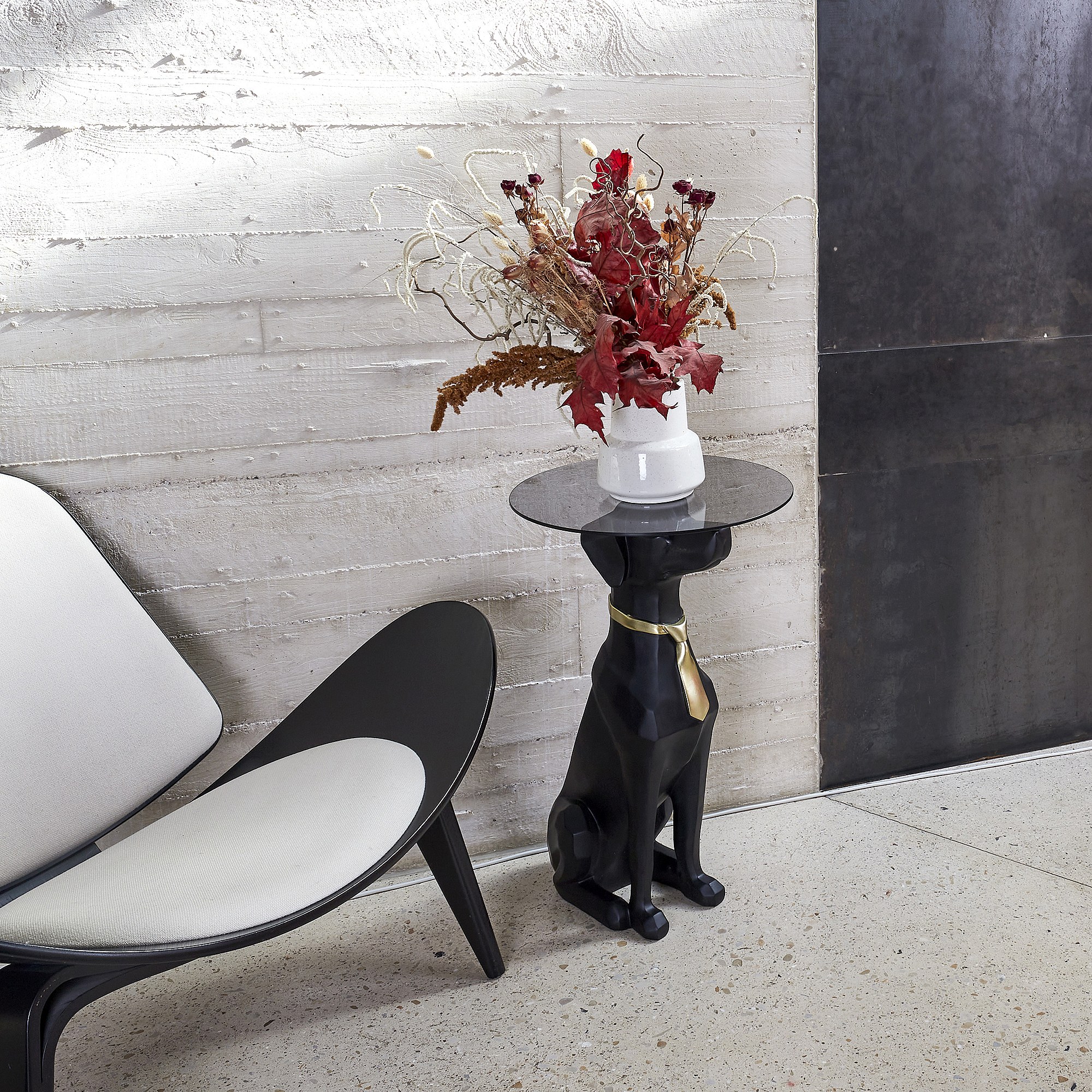Table Basse Deco Chien Assis 66cm Noir, Or