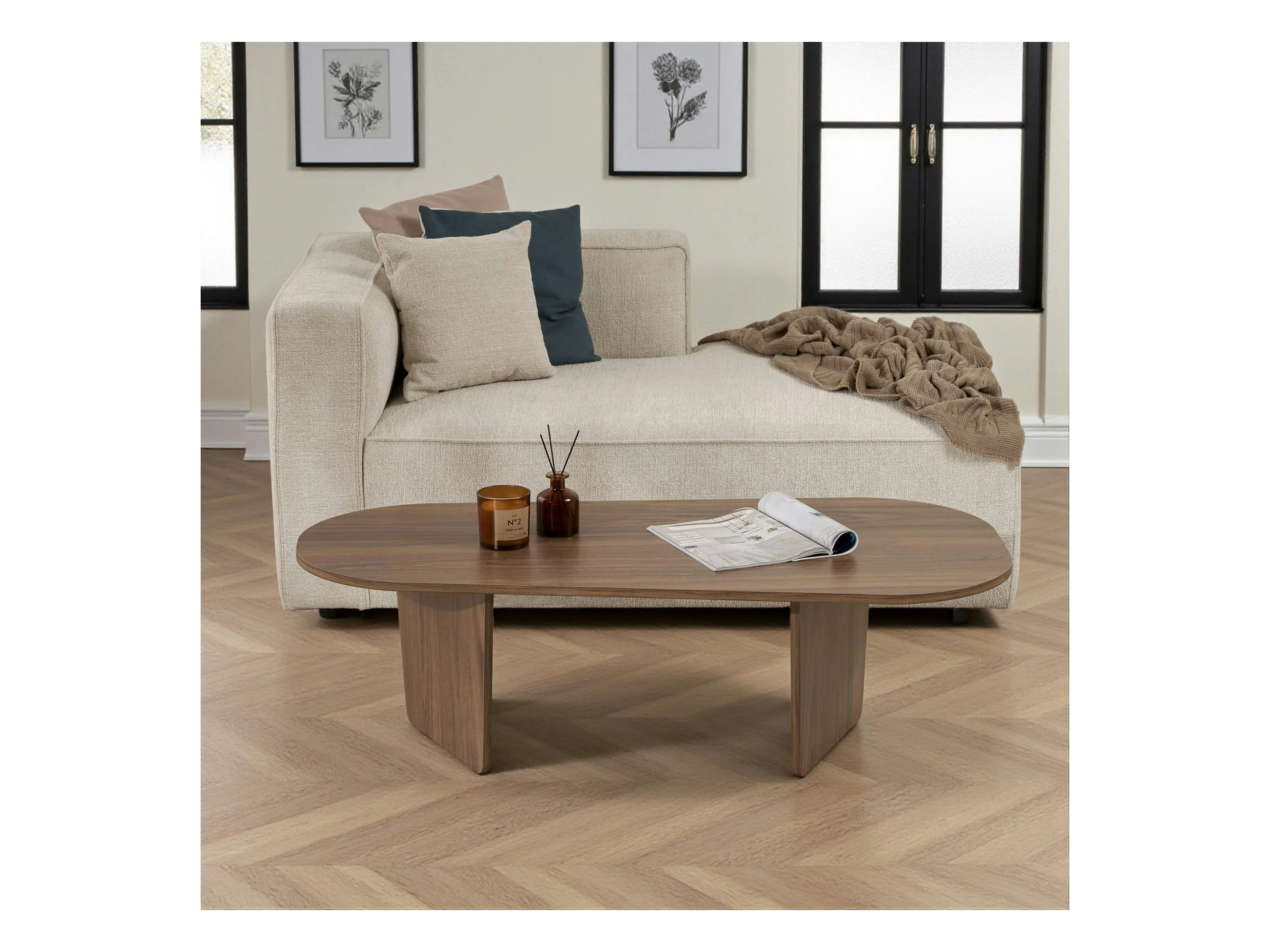 Table basse ovale plateau effet noyer - pieds en V MARFA