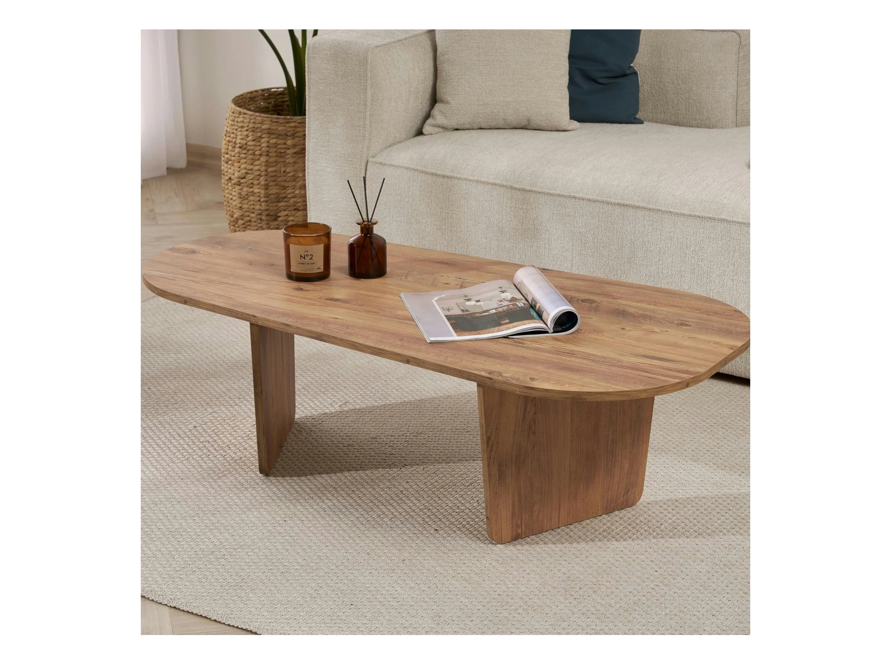 Table basse ovale effet bois de pin - pieds en V MARFA