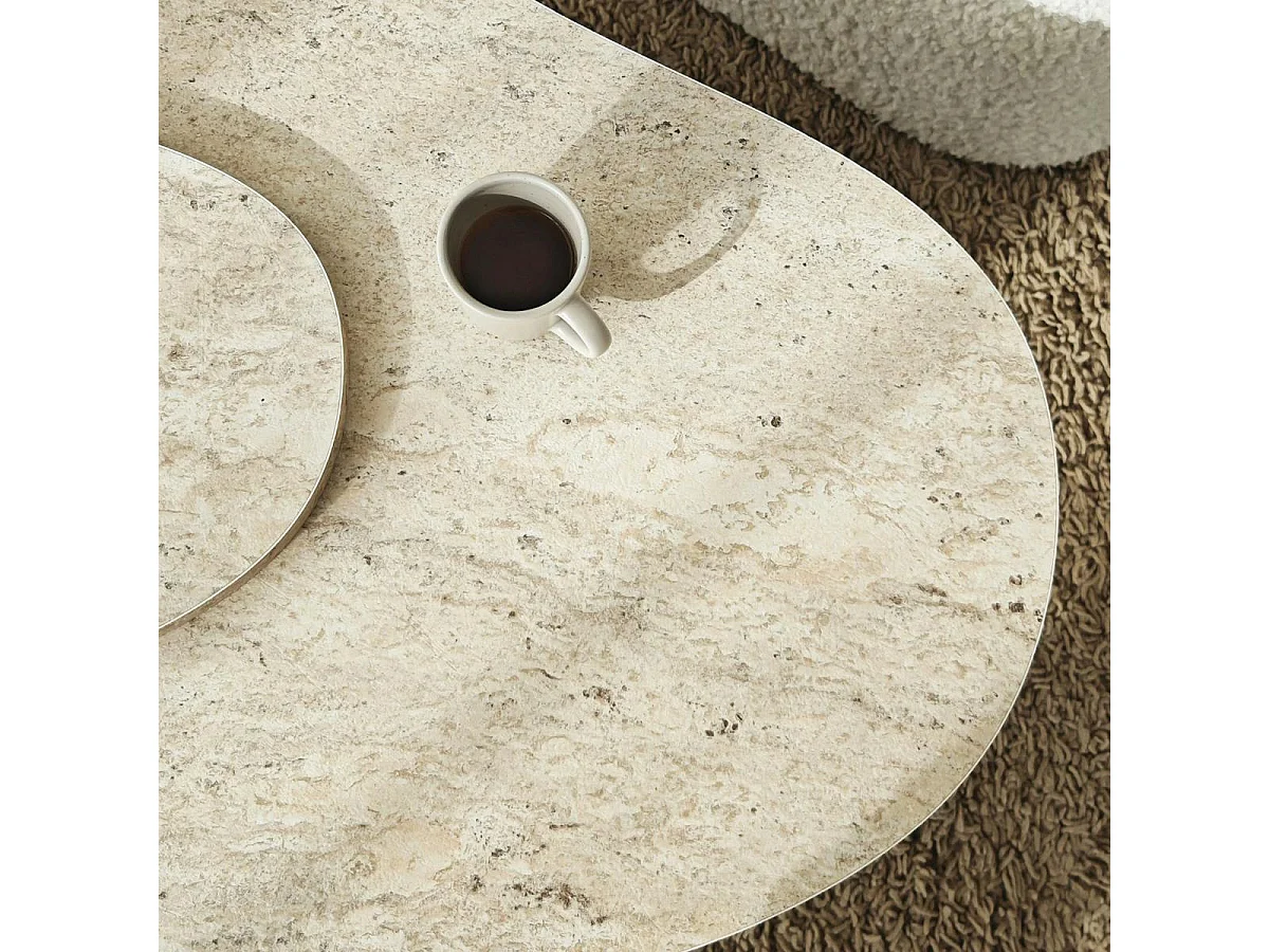 Table basse design organique effet travertin 2 plateaux MARFA