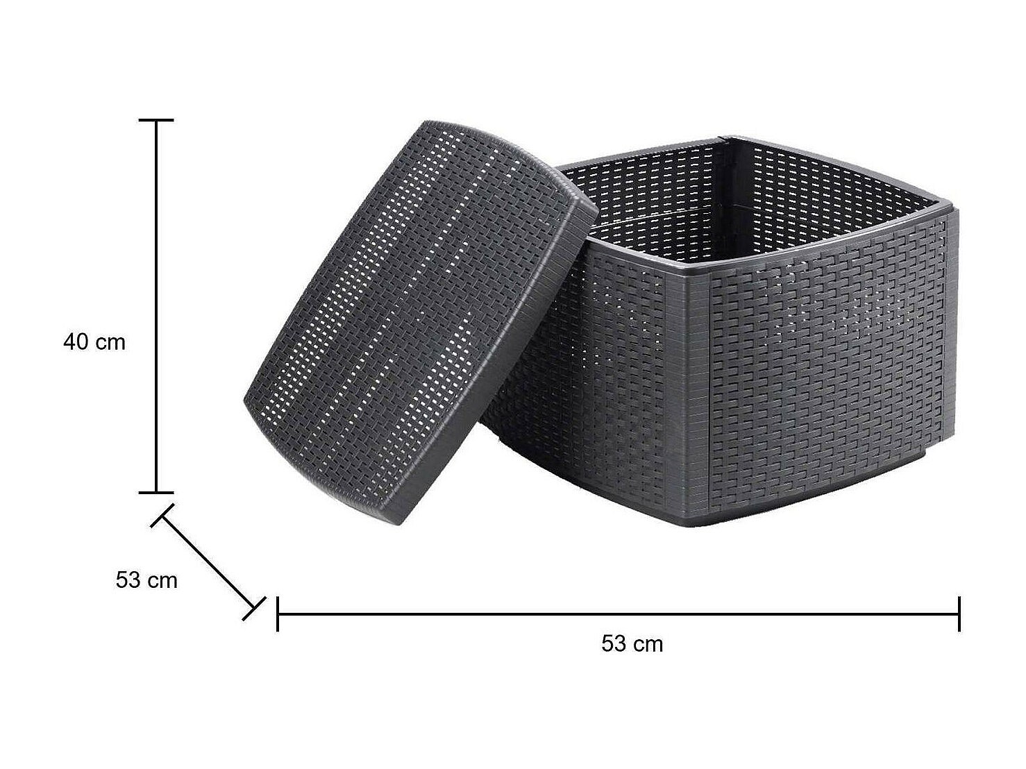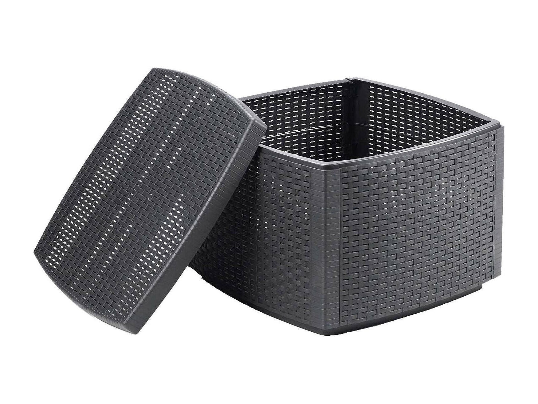 Table basse d'extérieur Faenza, Table de rangement polyvalente, Etagère basse effet rotin, 100% Made in Italy, 53x53h40 cm, Anthracite