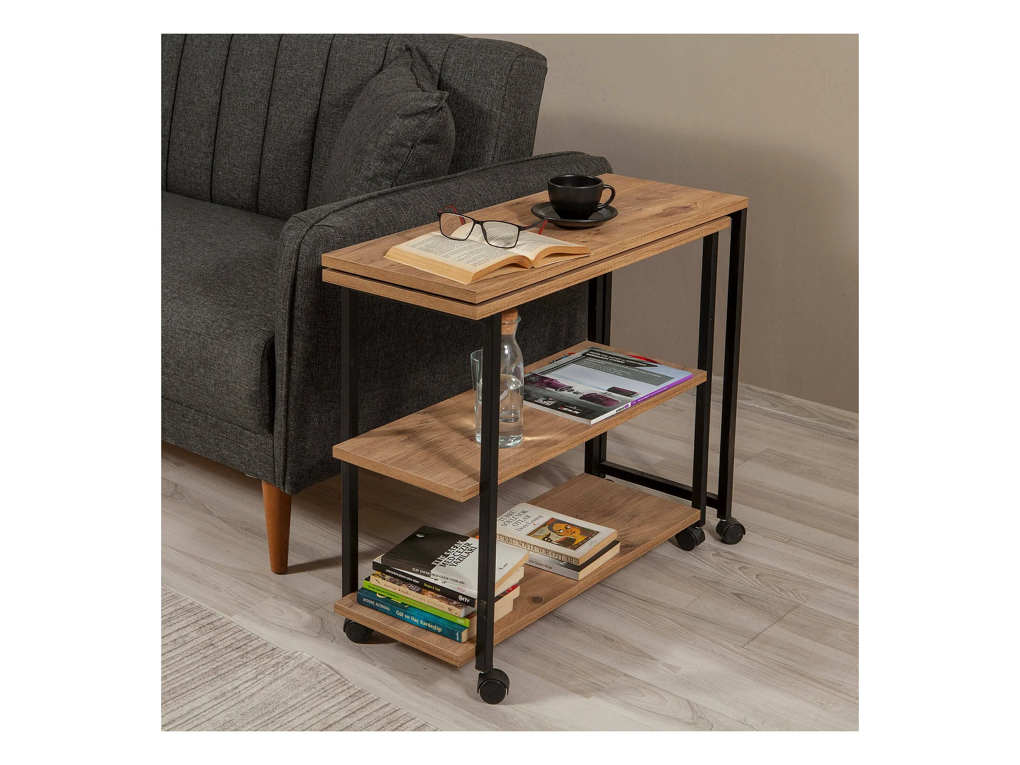 Table basse Dmarcodagrac, Table basse, Porte-revues pour canapé, Etagère de salon, 70x76 h63 cm, Chêne et Noir