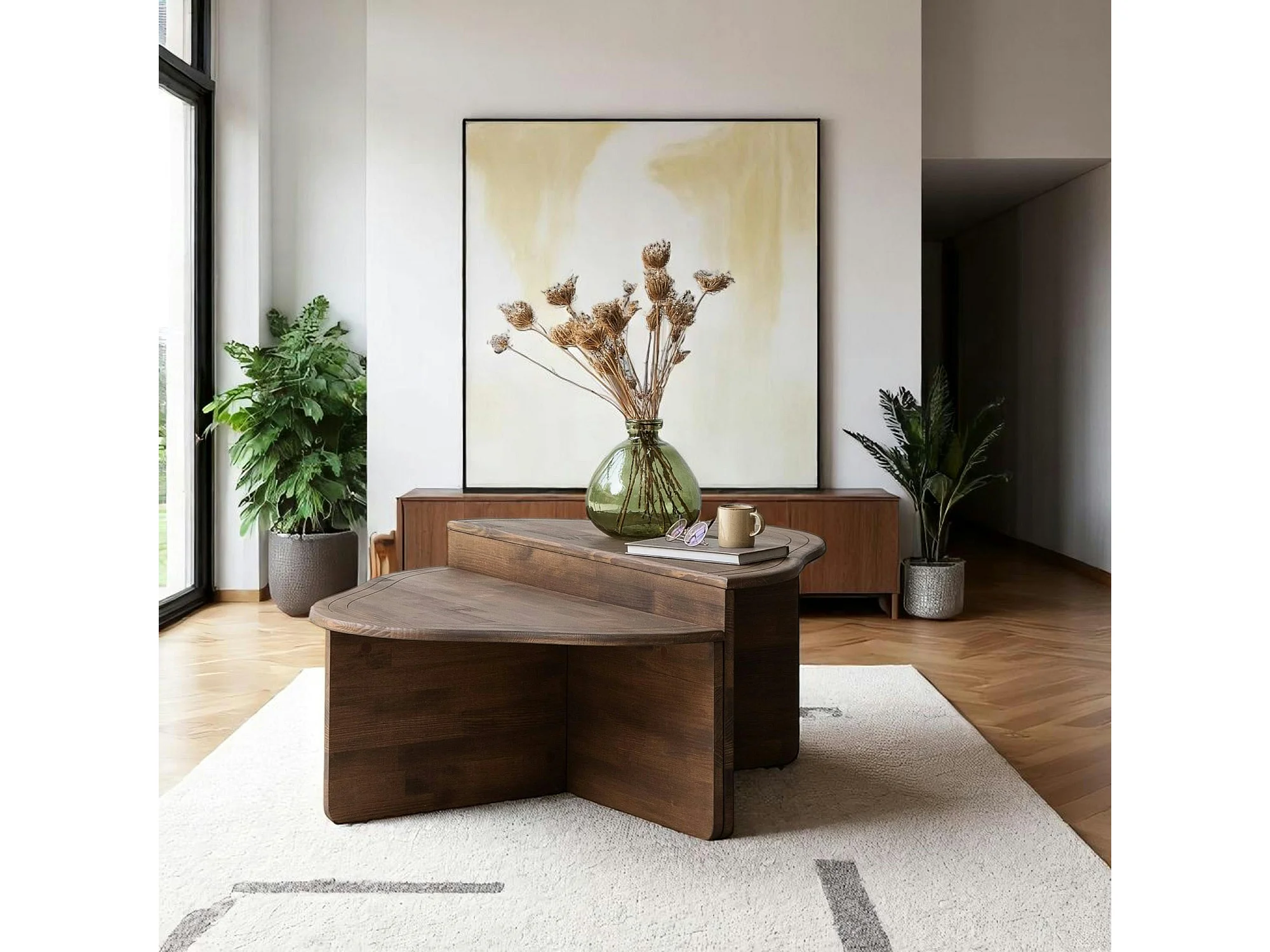 Table basse en bois brun - organique, 2 hauteurs LINARES