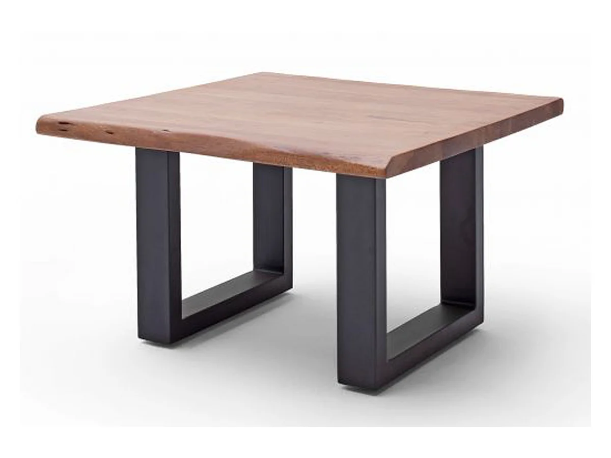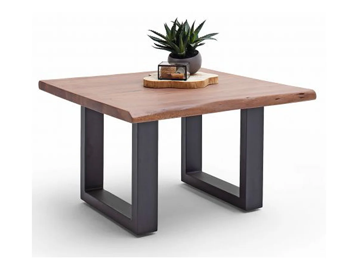 Table basse en bois d'acacia massif noyer et acier anthracite - L.75 x H.45 x P.75 cm