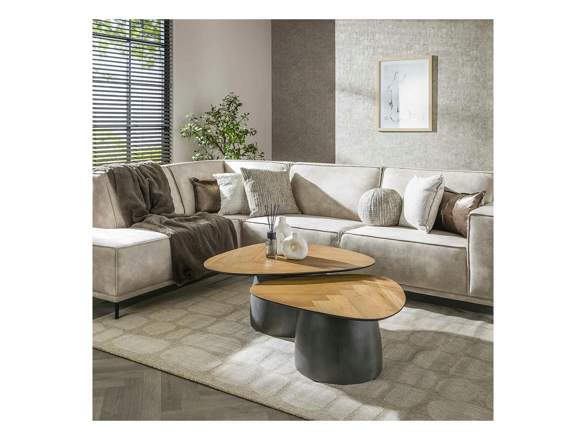 Table basse en bois de teck et métal motif chevron (lot de 2) MAYA