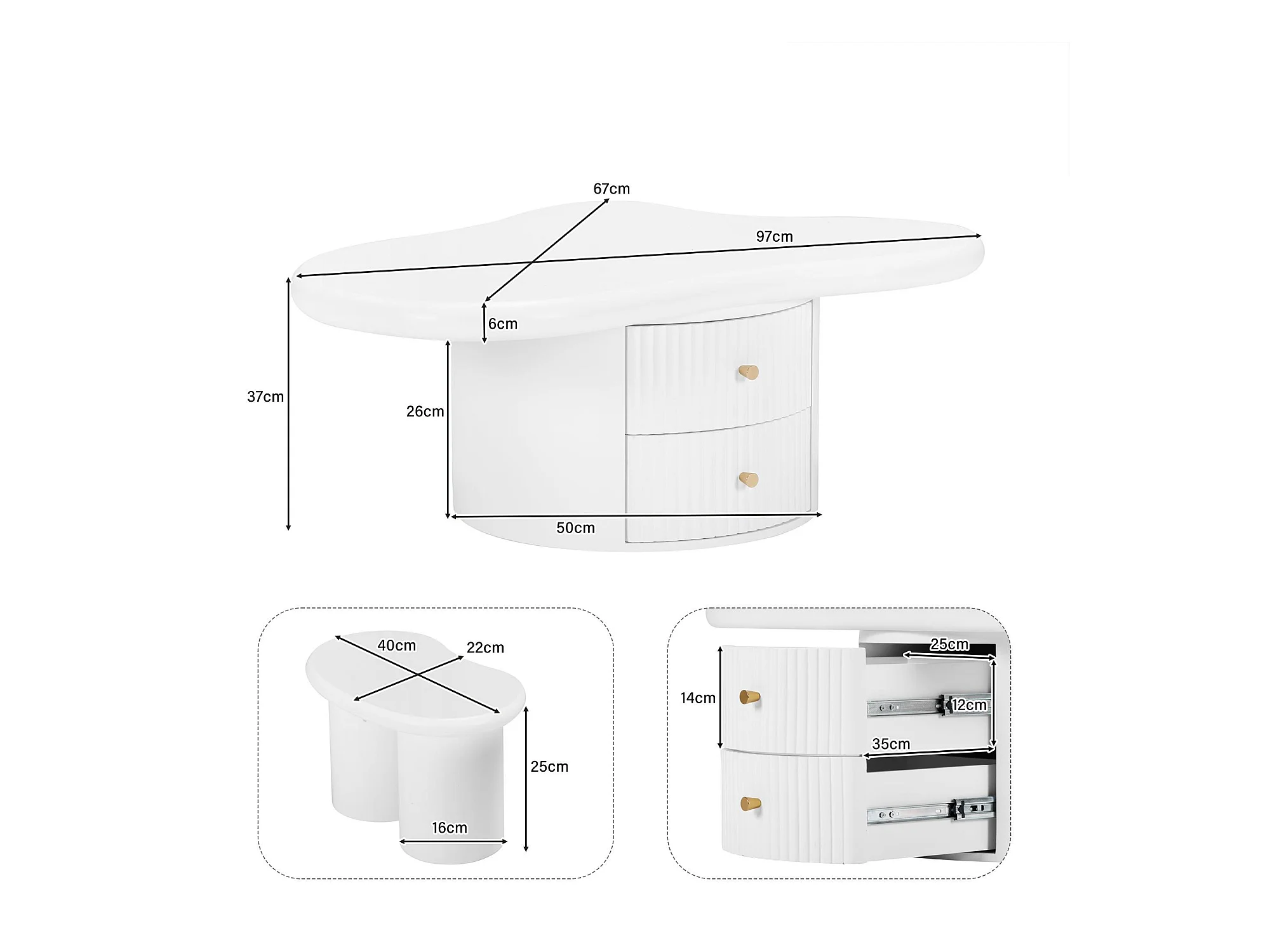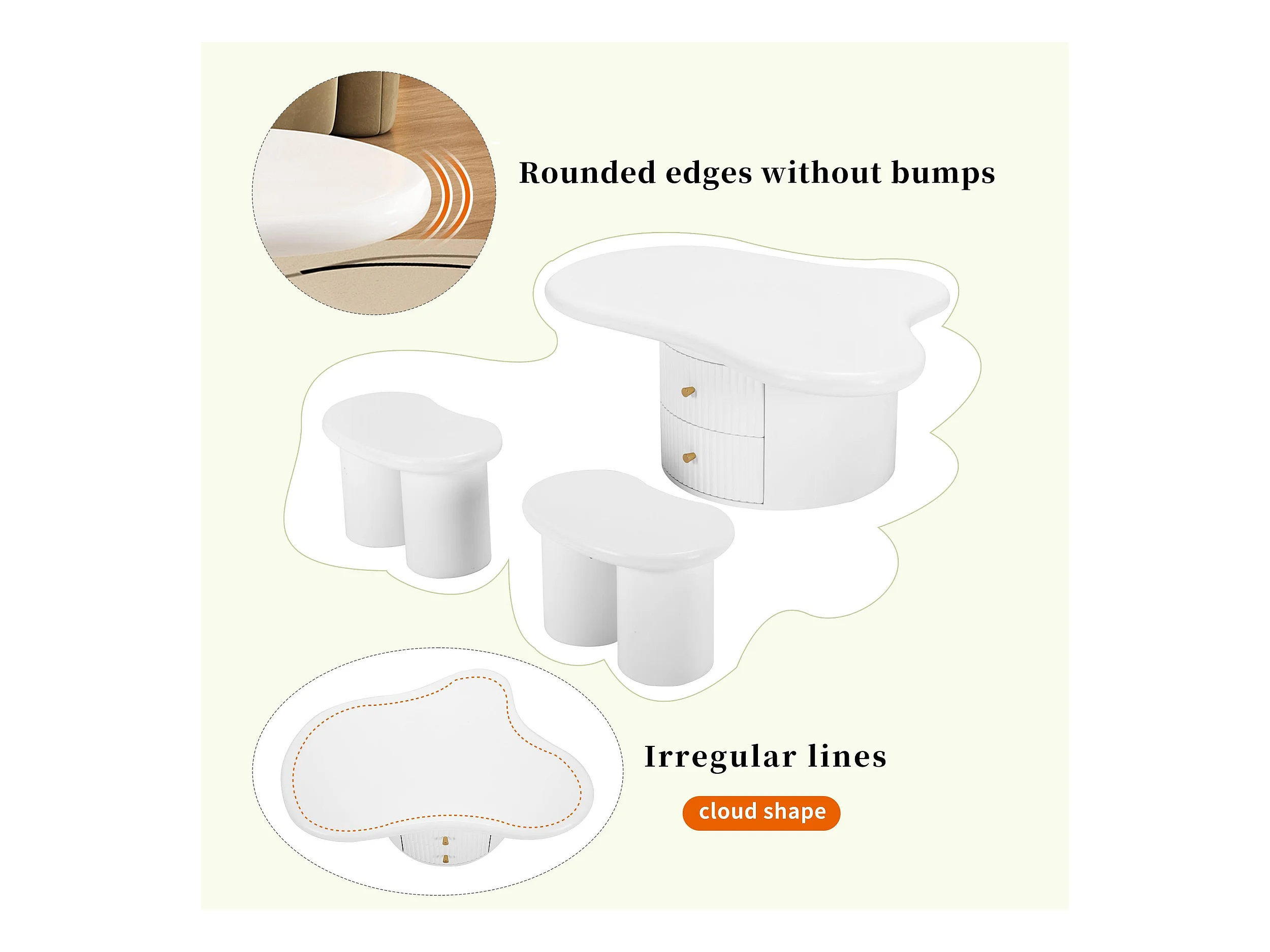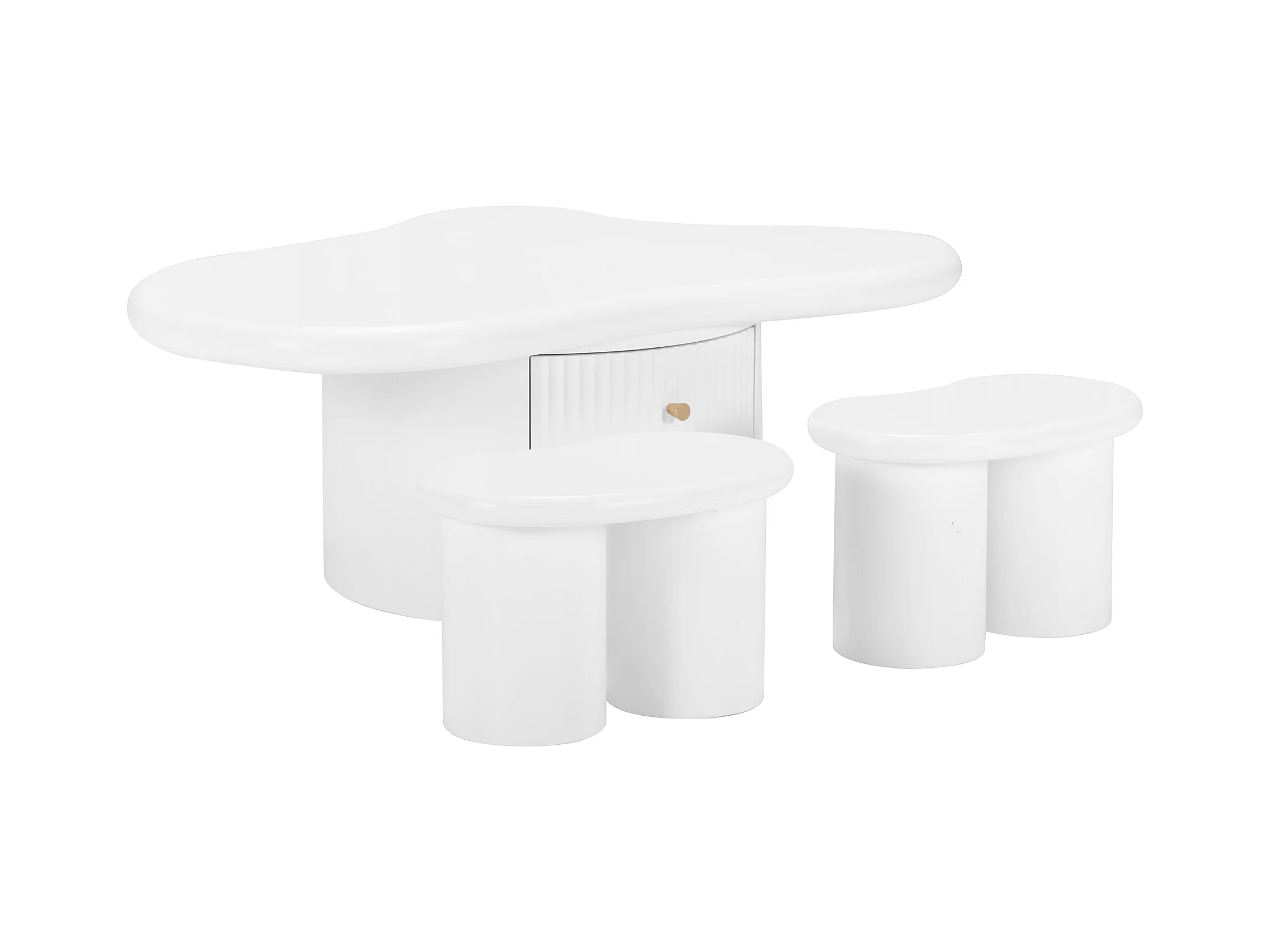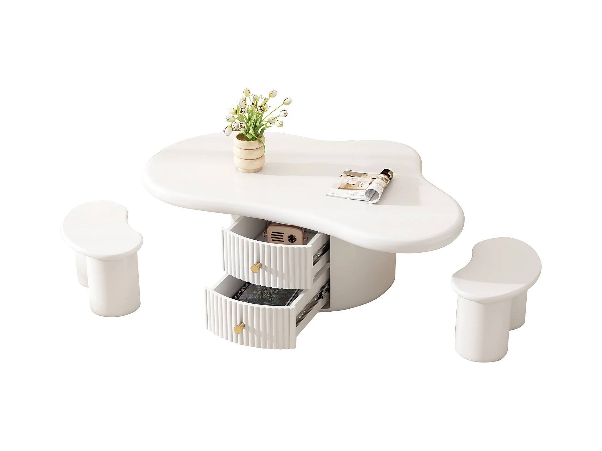 Table basse en MDF - avec 2 tiroirs et 2 tabourets - Blanc