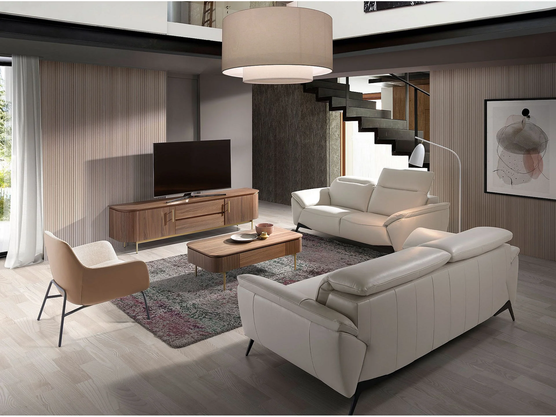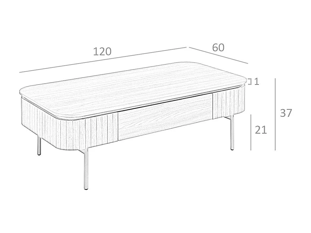 Table basse rectangulaire en noyer et acier poli or 2108 ANGEL CERDA