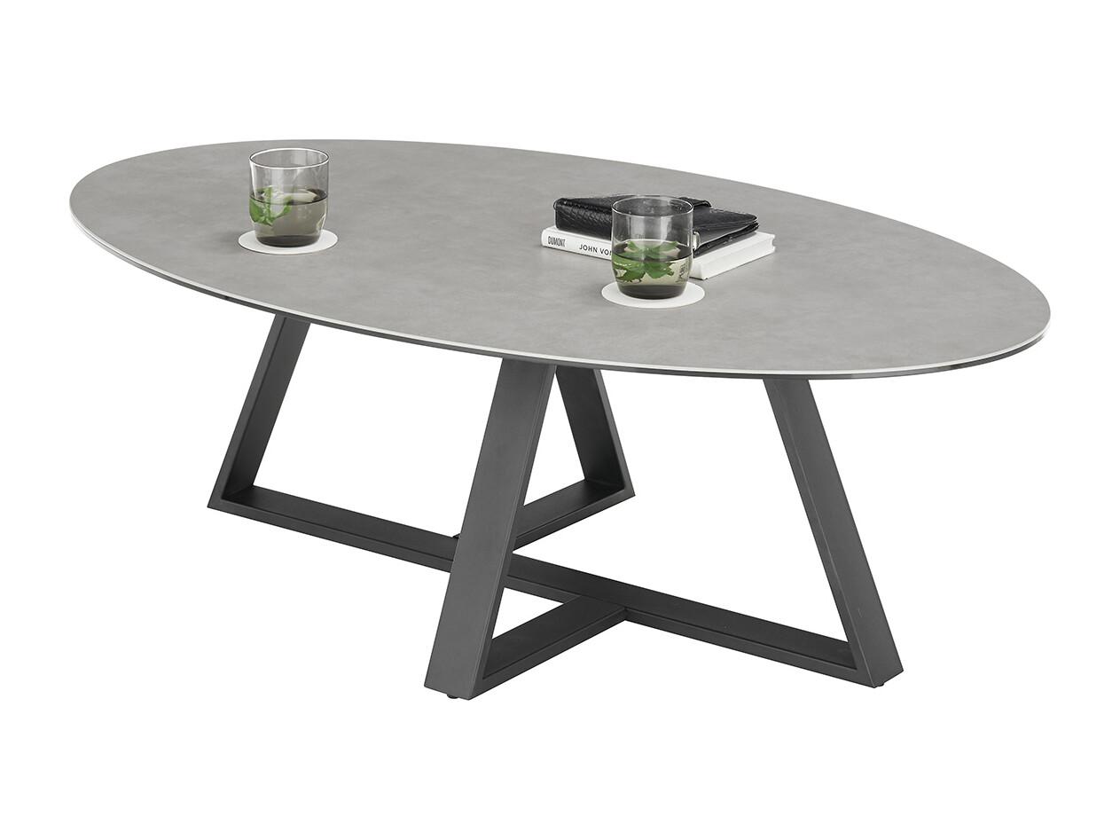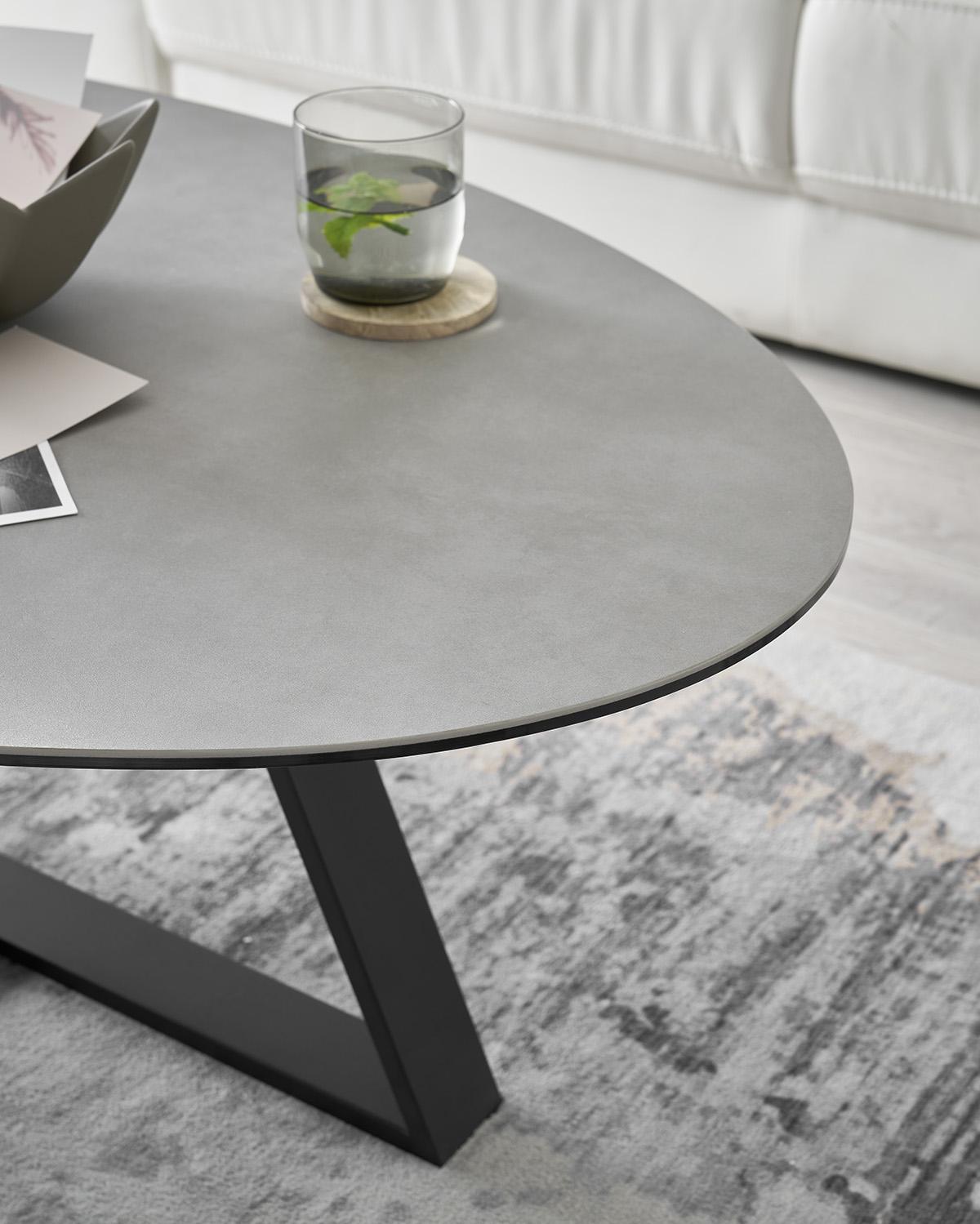 Table basse en verre et céramique coloris gris et métal coloris noir mat -longueur 120 x hauteur 38 x profondeur 70 cm