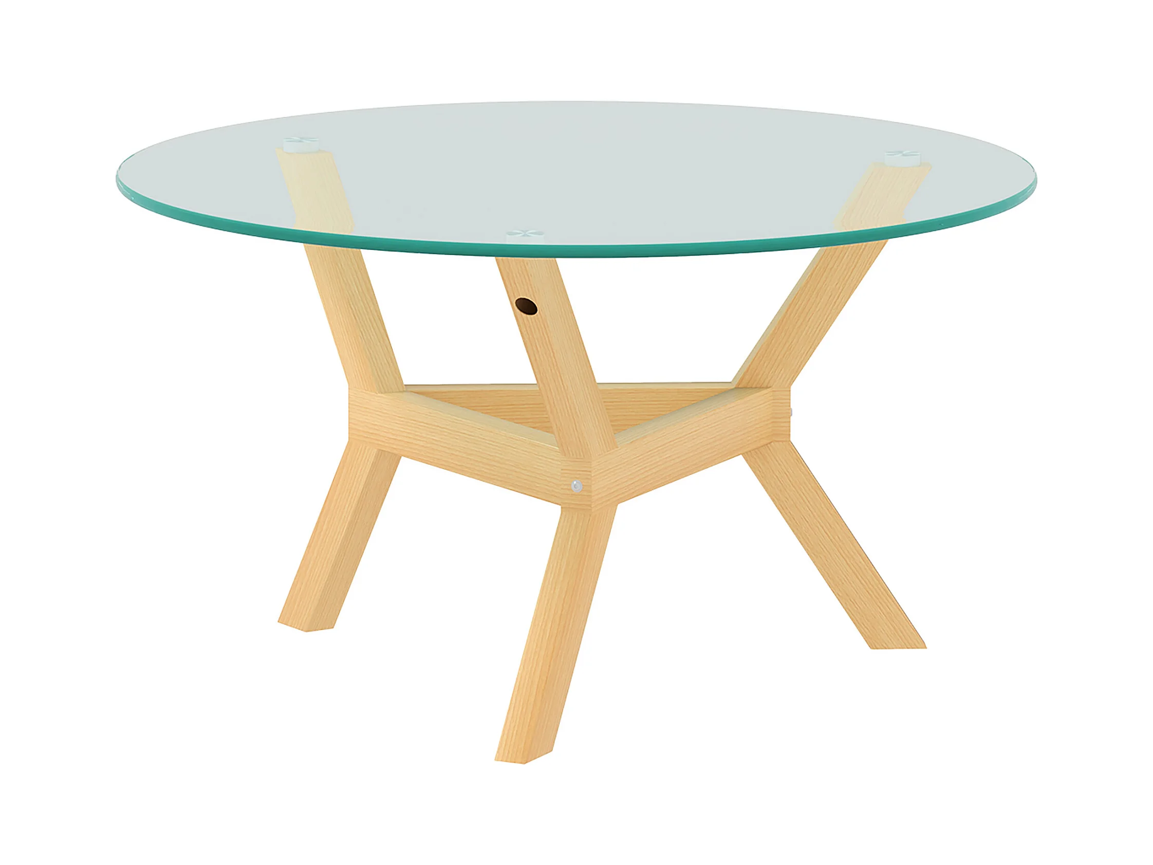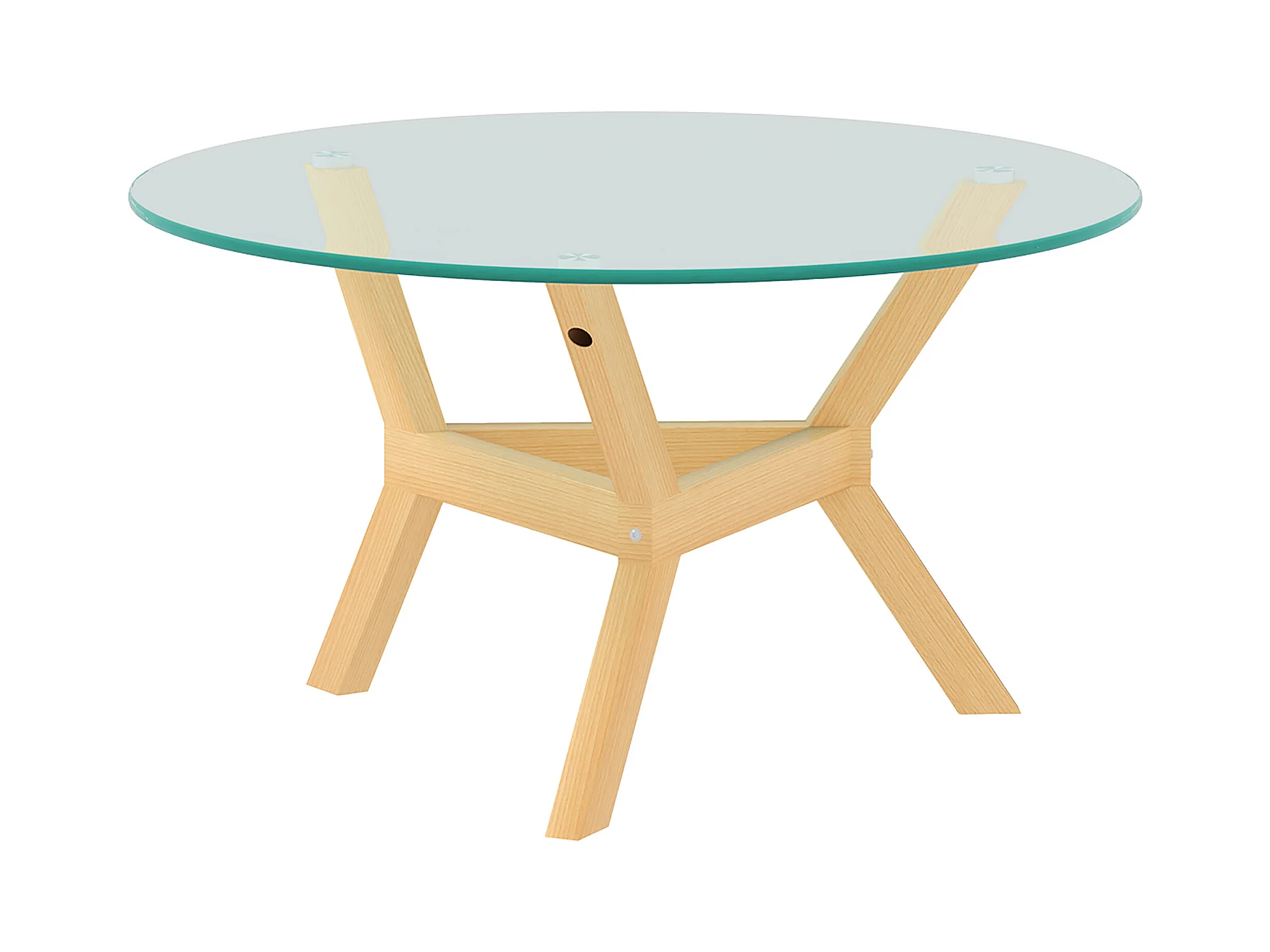 Table basse ronde verre trempé et bois naturel Fiord 90cm
