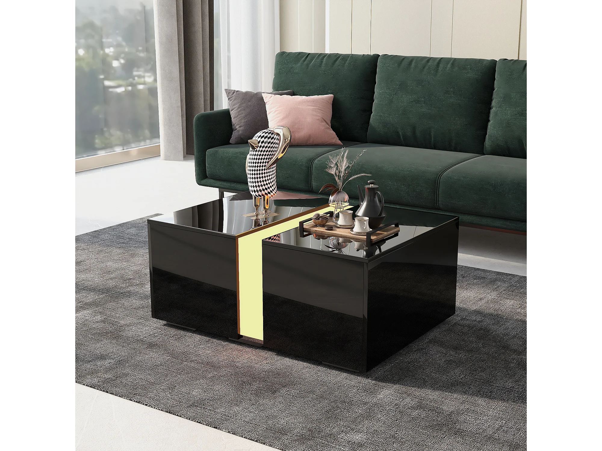 Table basse moderne avec LED et rangement caché, bois aggloméré, noir (73x60x34 cm)