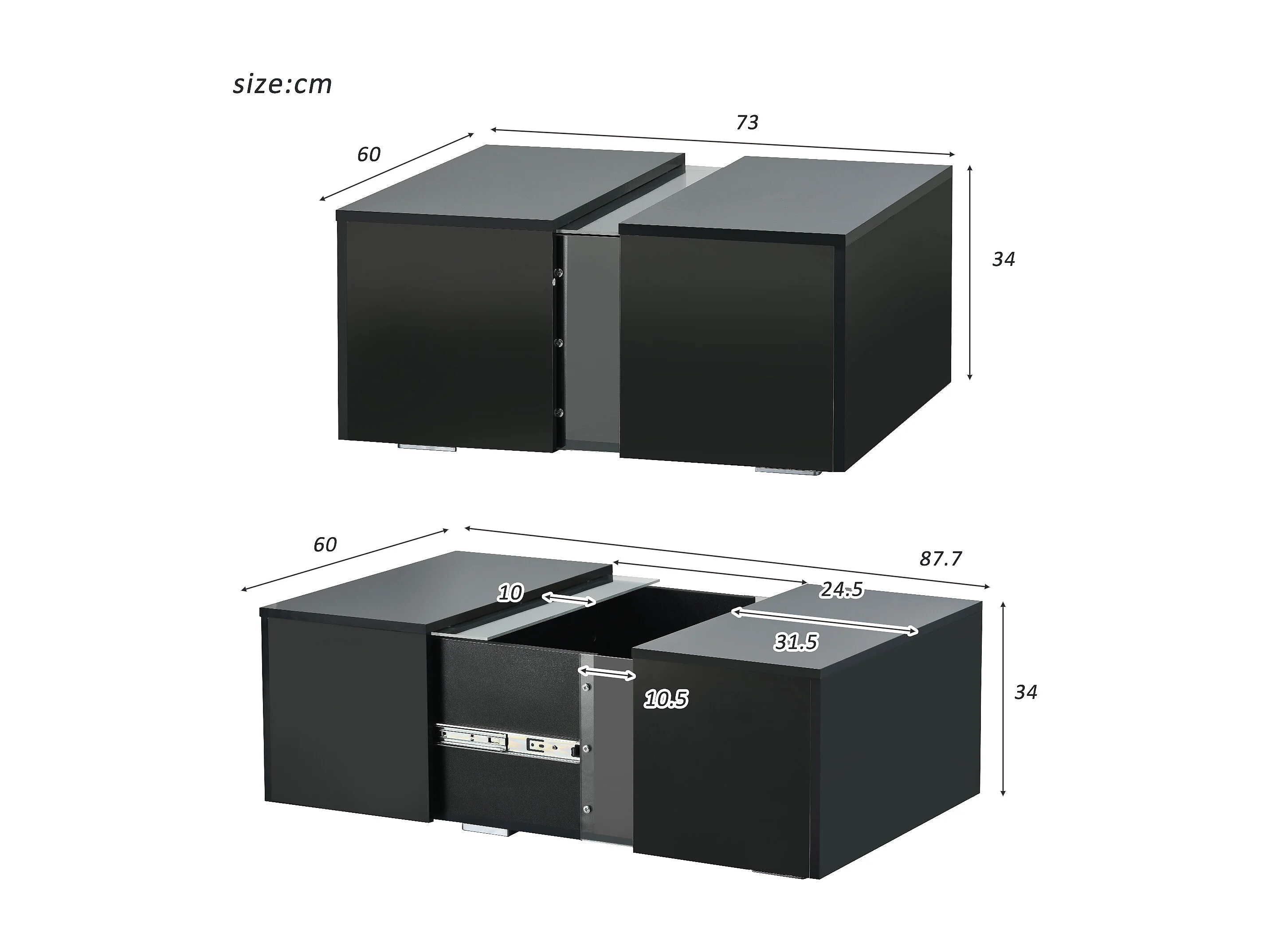 Table basse fixe 73x60x34 cm avec LED et télécommande Compartiment rétractable - Noir