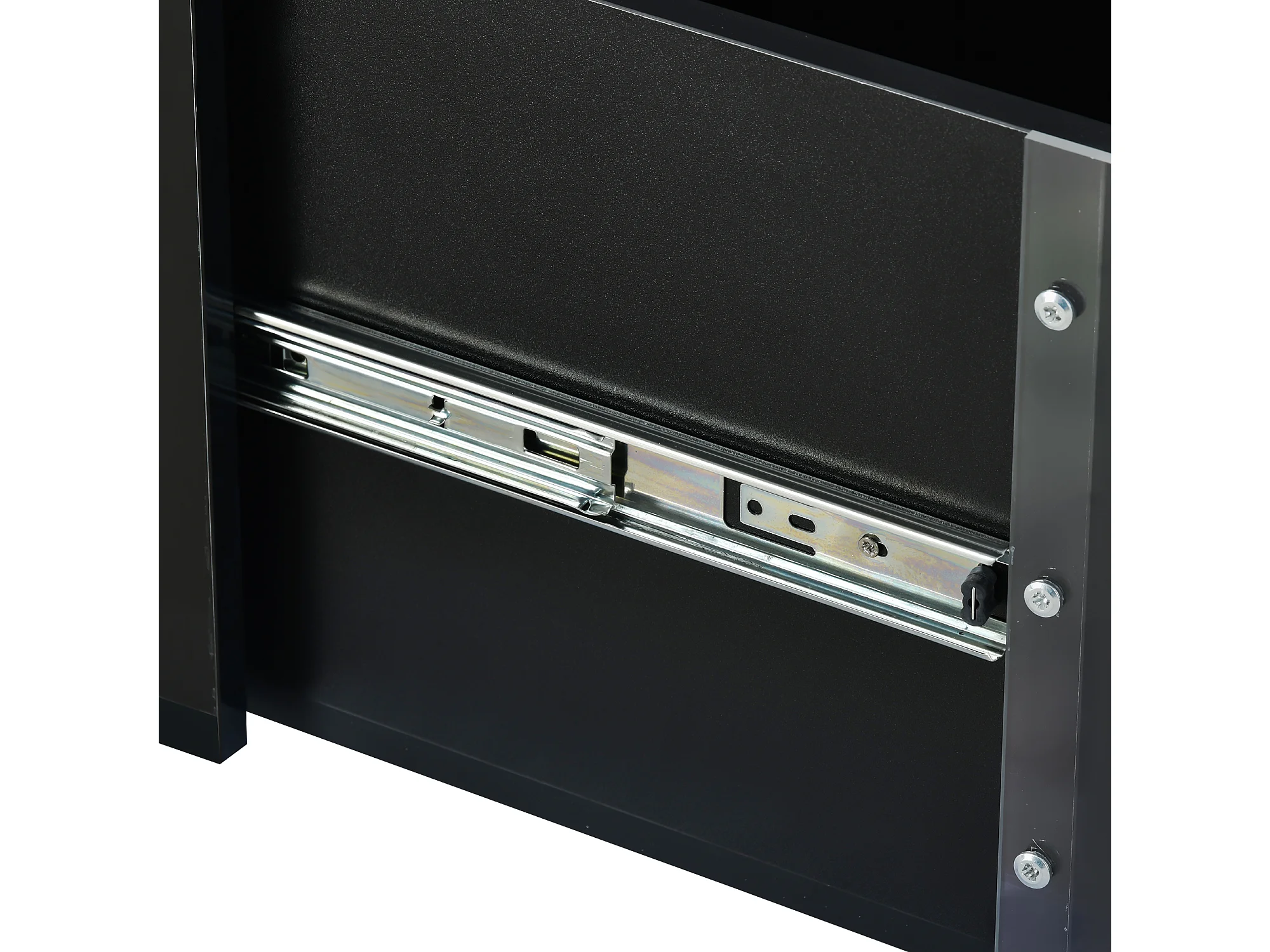 Table basse moderne en finition laquée noir brillant, 2 tiroirs, MDF et métal doré (100x60x41.5 cm)