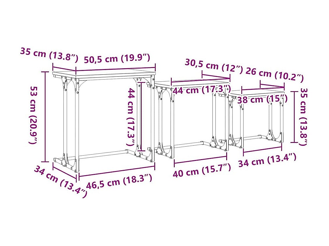 Tables gigognes 3 pièces chêne sonoma bois d'ingénierie