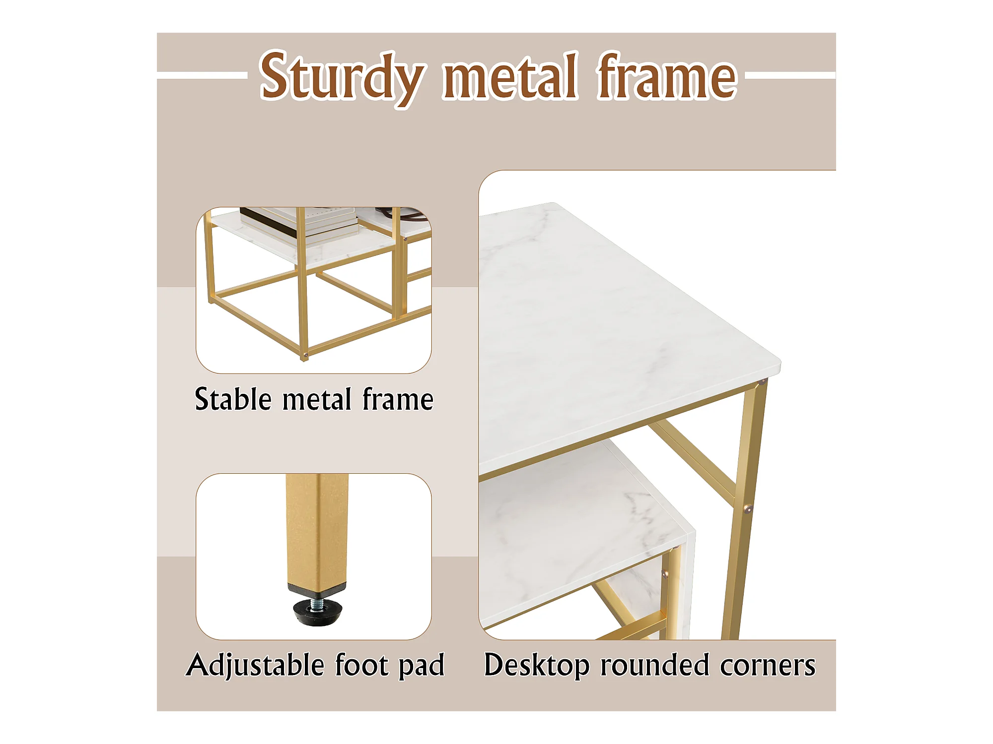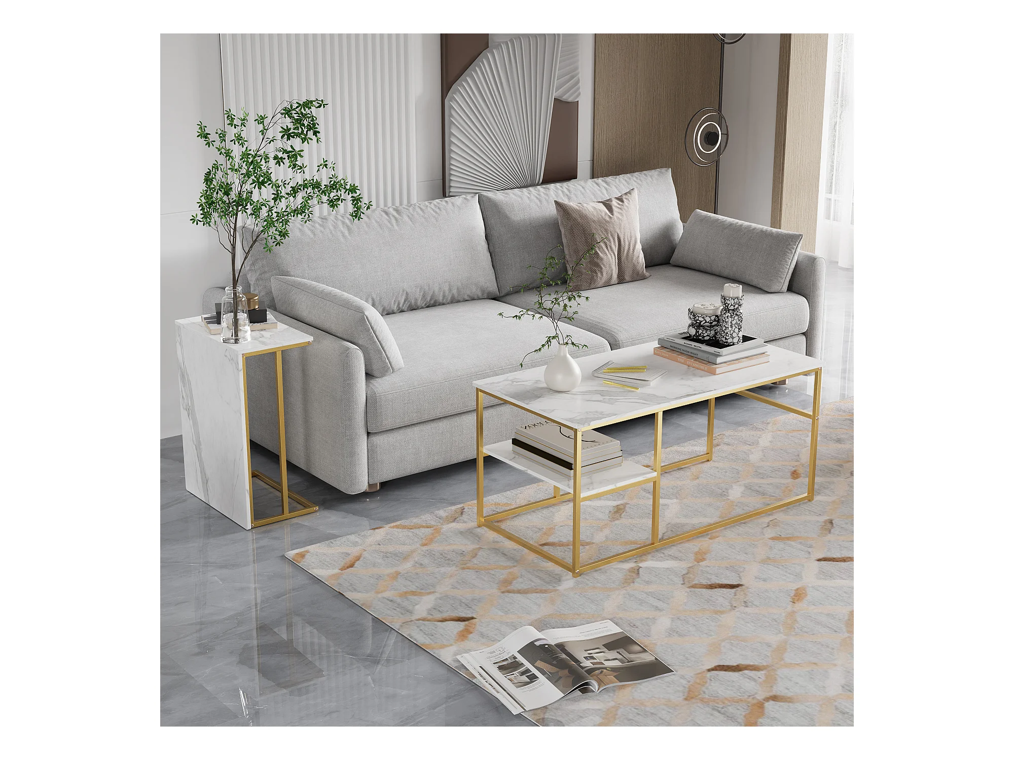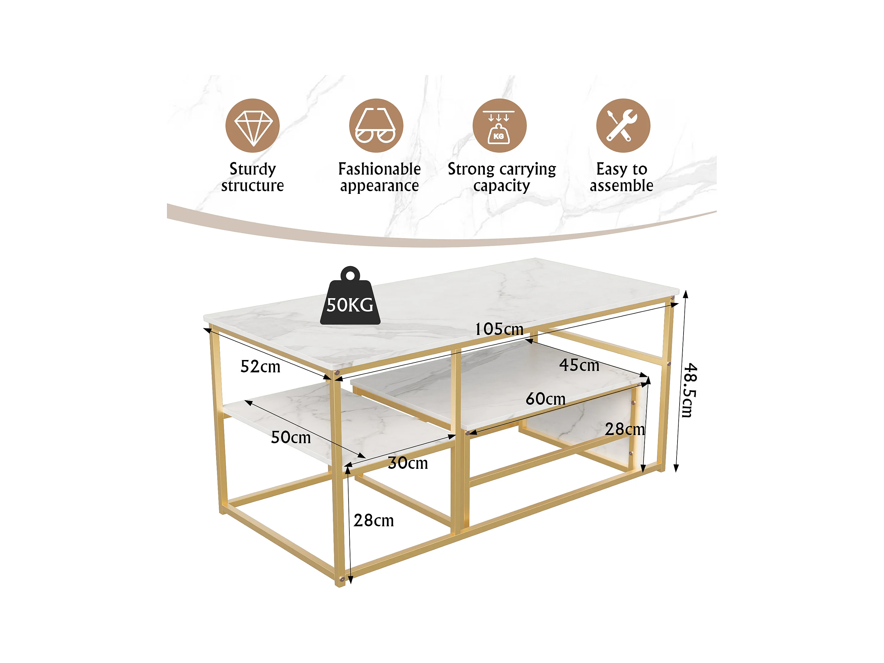 Table basse gigogne carrée en marbre blanc avec structure dorée – Ensemble moderne 2 pièces