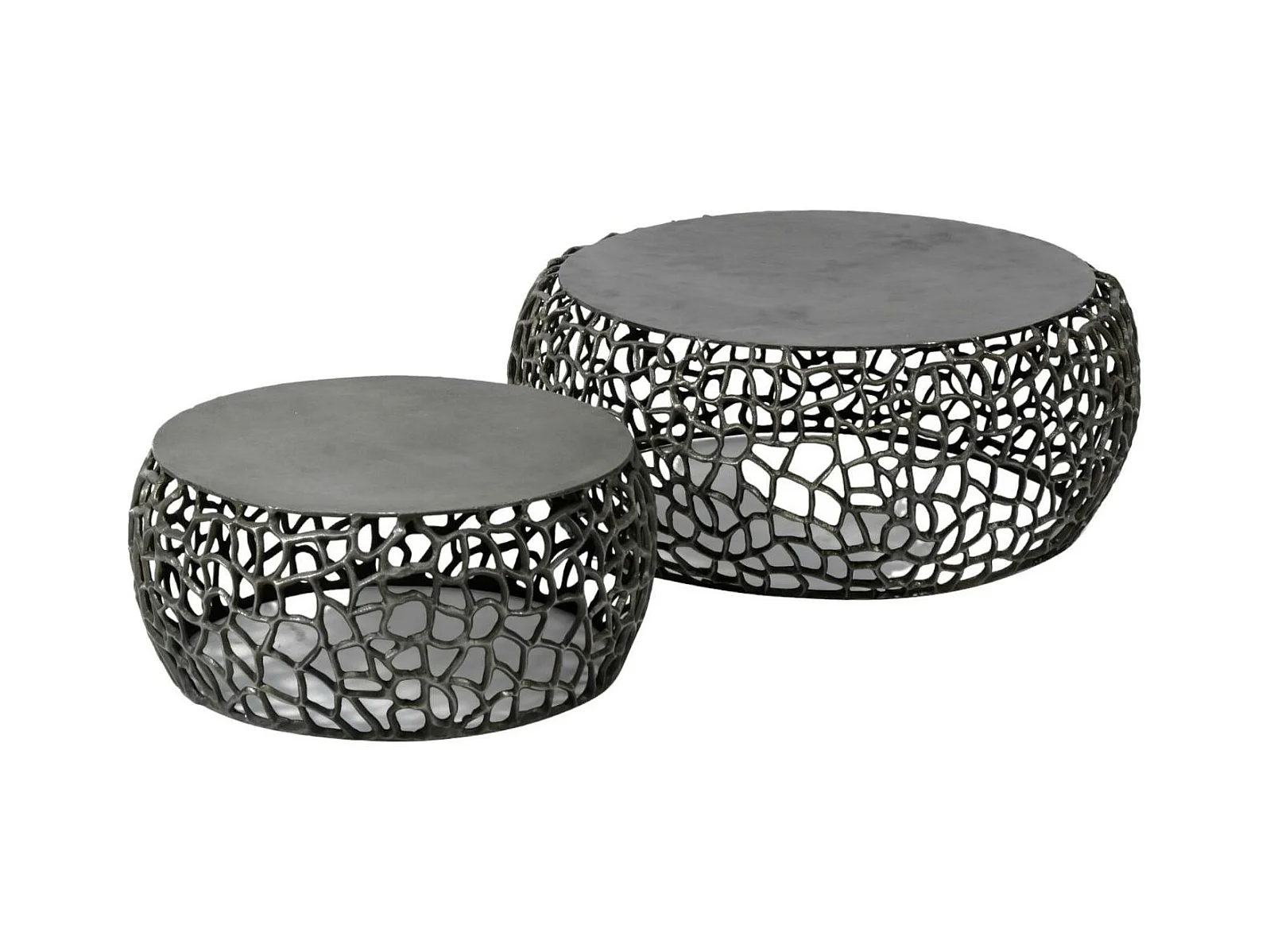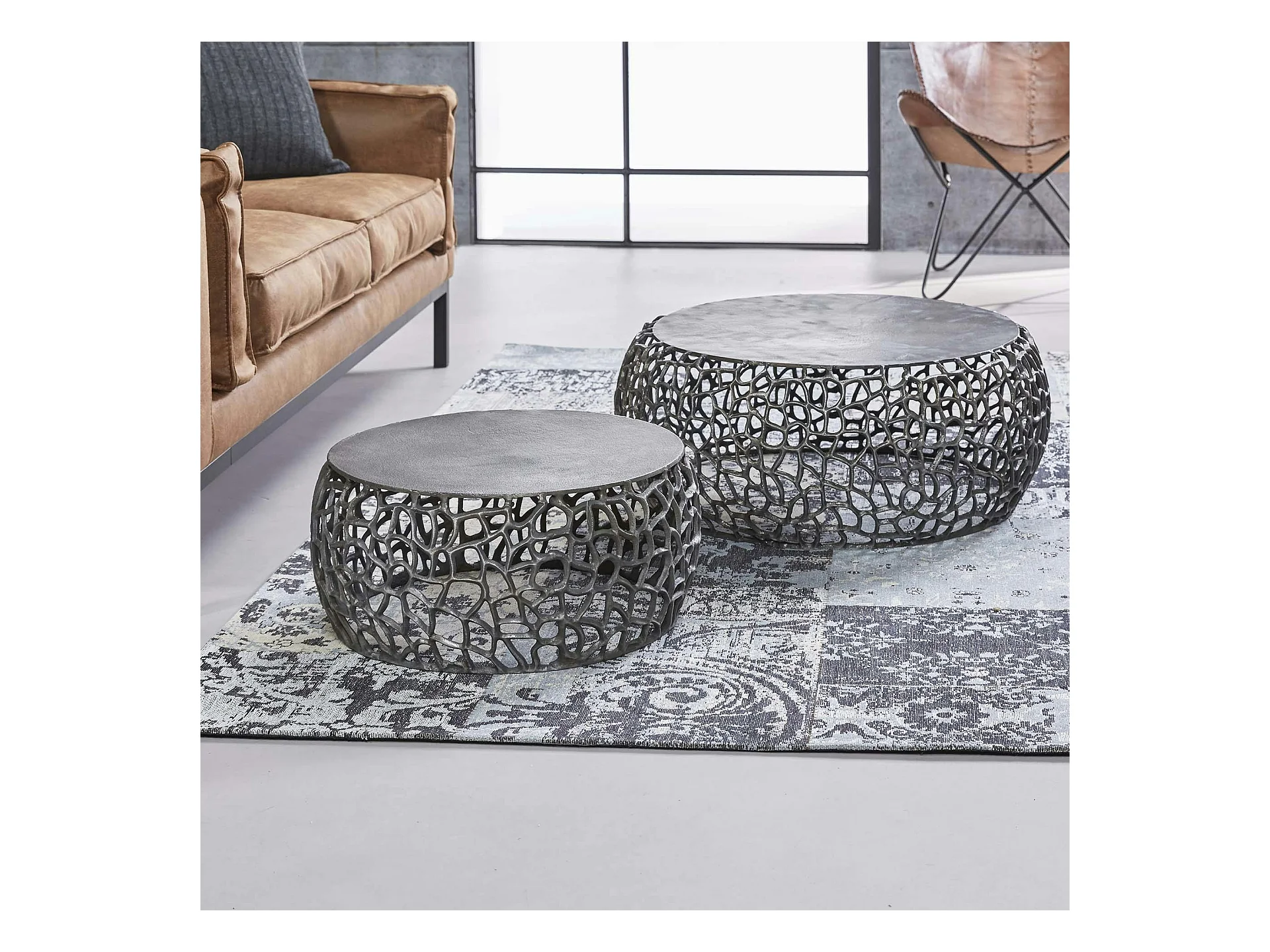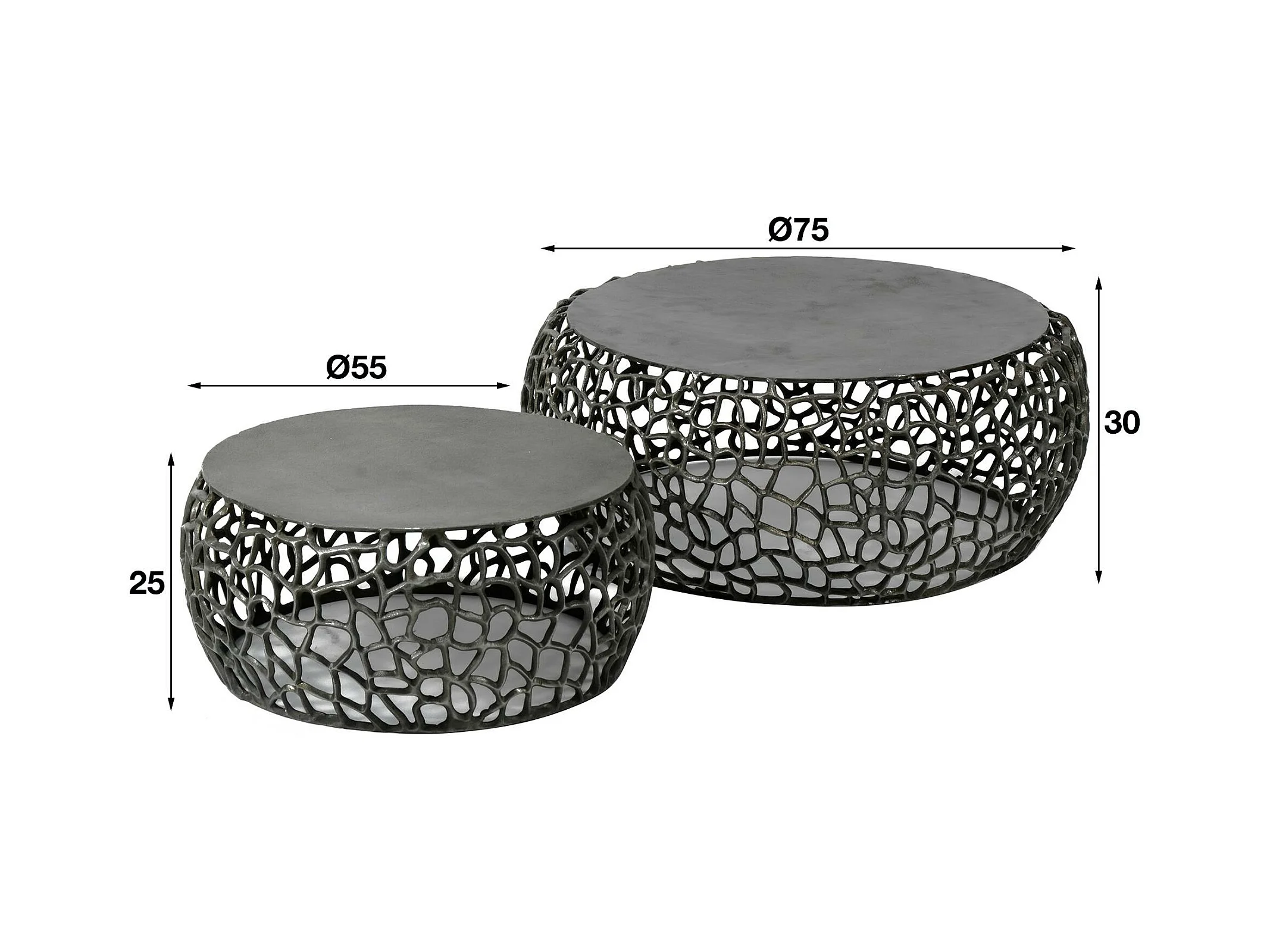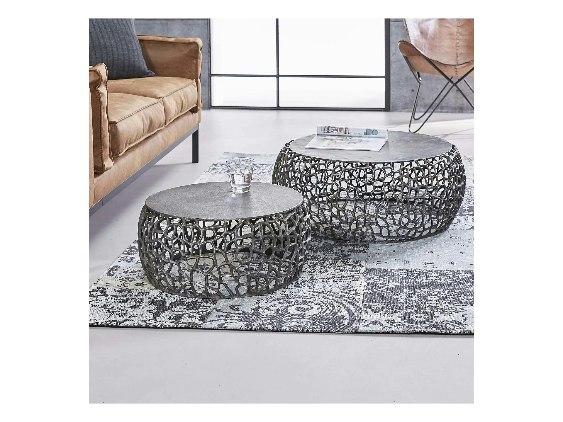 Table basse gigogne en métal gris motifs ajourés (2 pièces)