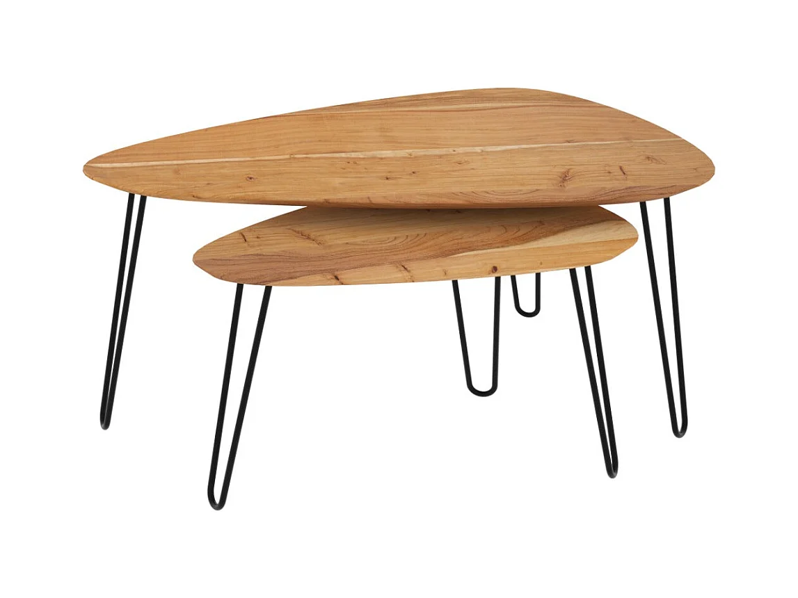 Table basse d'acacia ovale gigogne en bois (lot de 2) - Kiwi