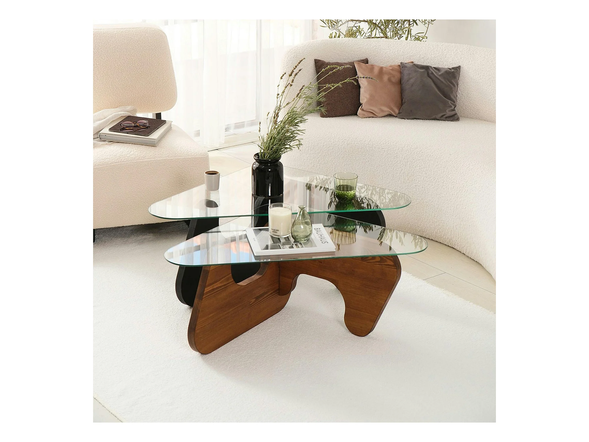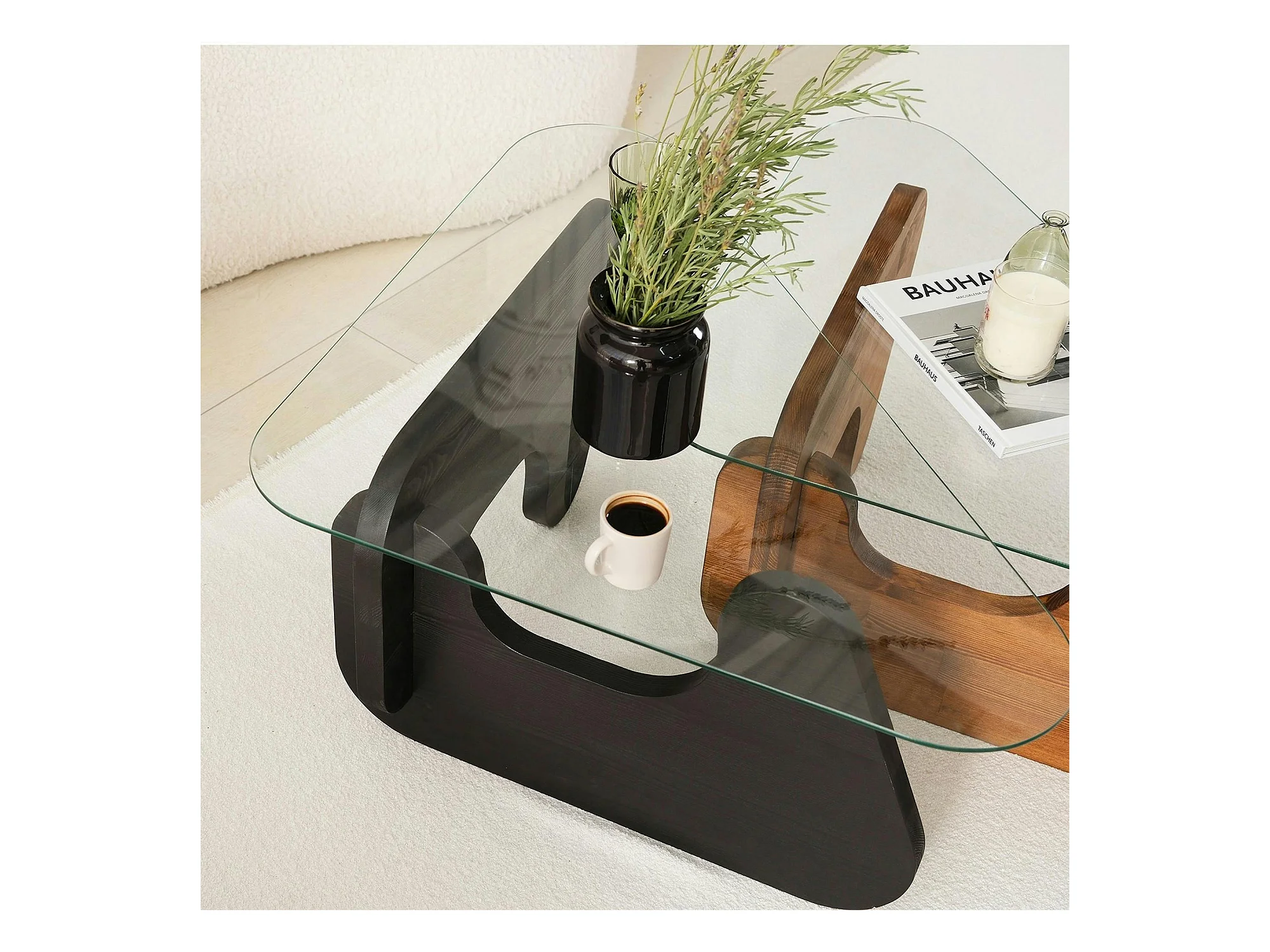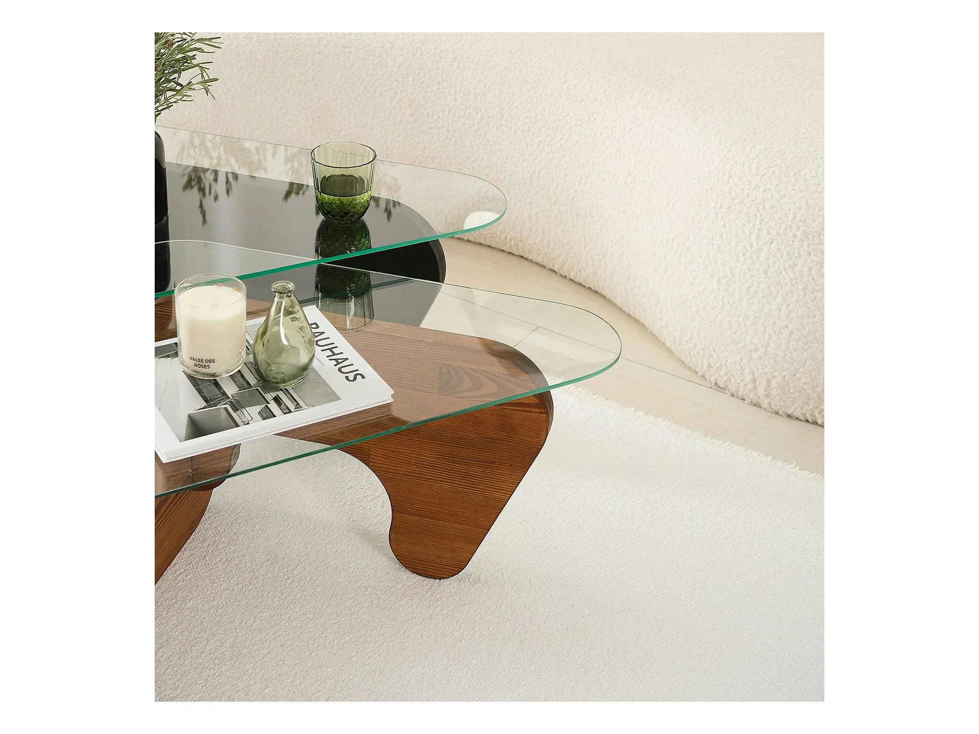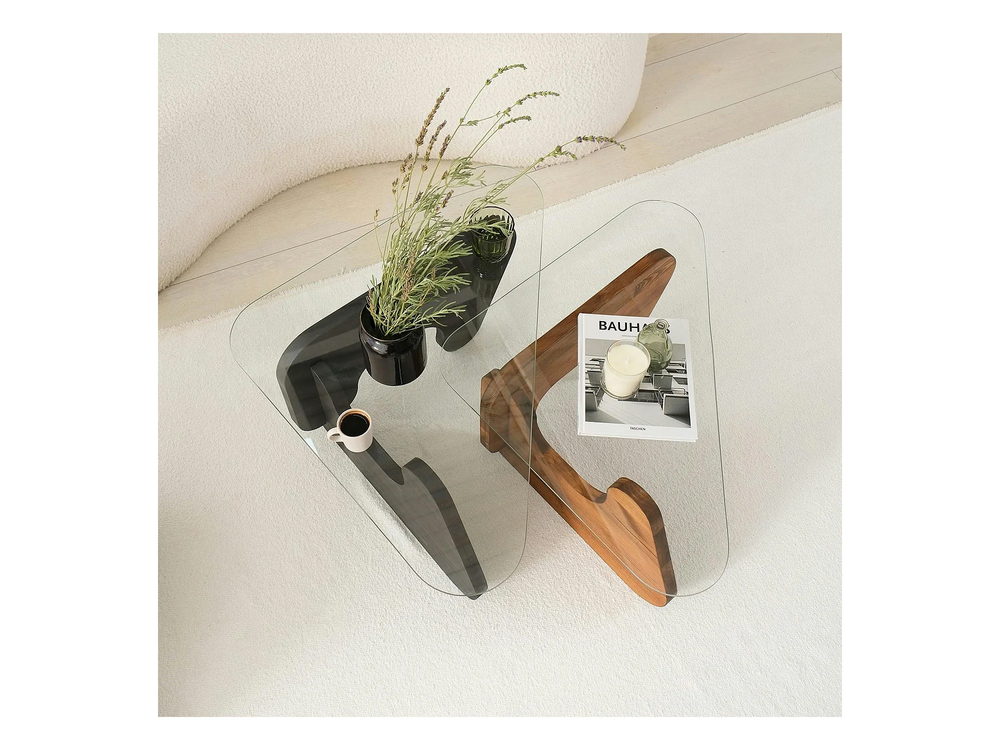Table basse gigogne verre - 2 bois, triangle (lot de 2) ANZIO