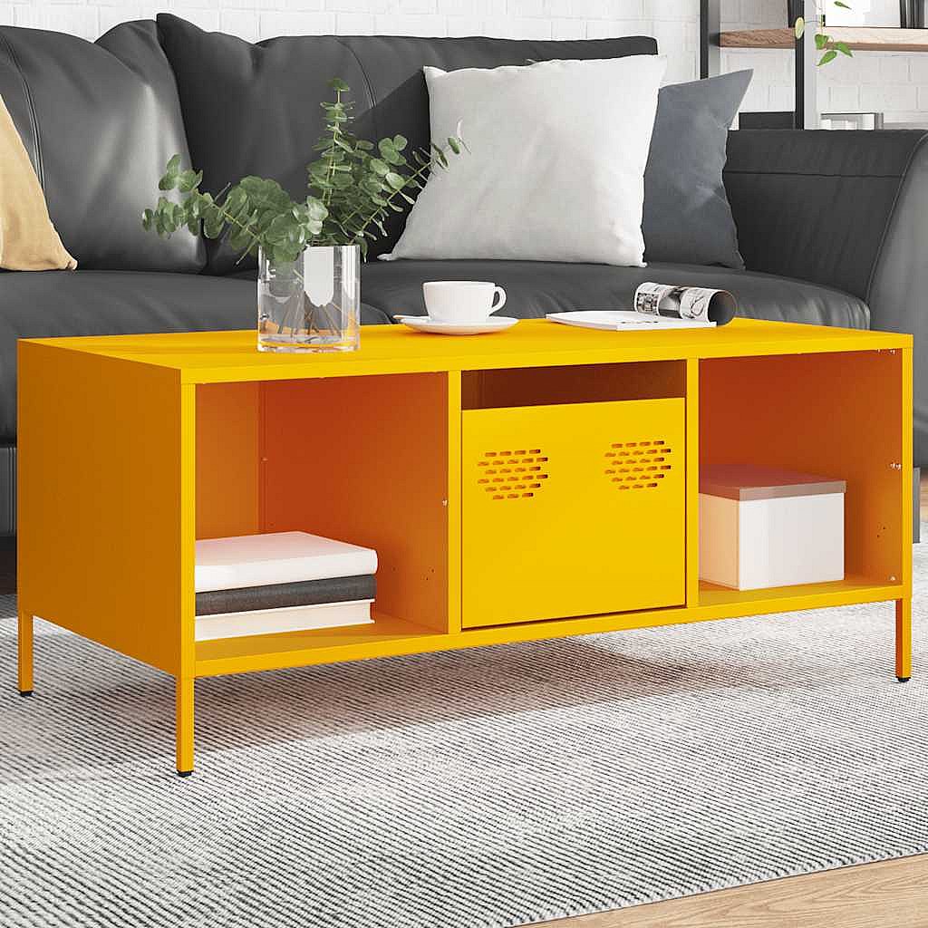 Table basse jaune moutarde 101,5x50x43,5cm acier laminé à froid