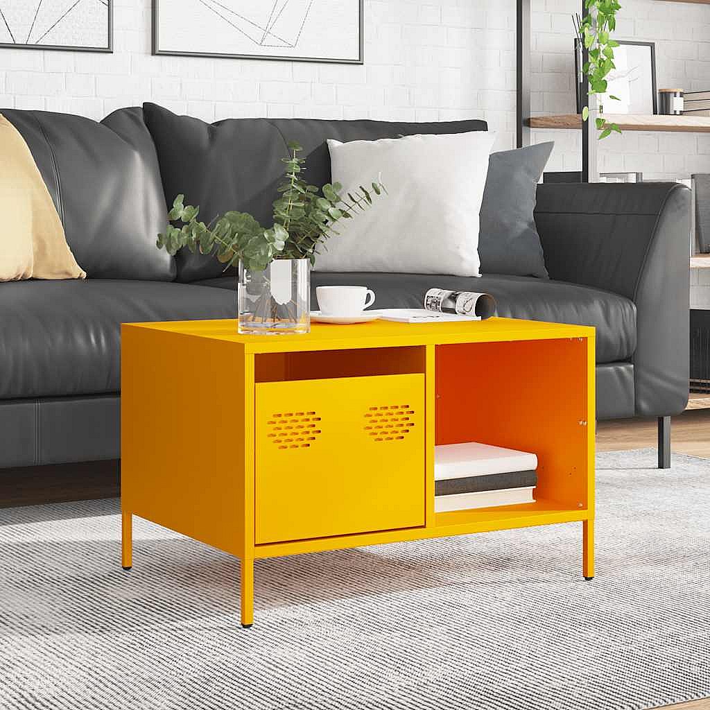 Table basse jaune moutarde 68,5x50x43,5 cm acier laminé à froid
