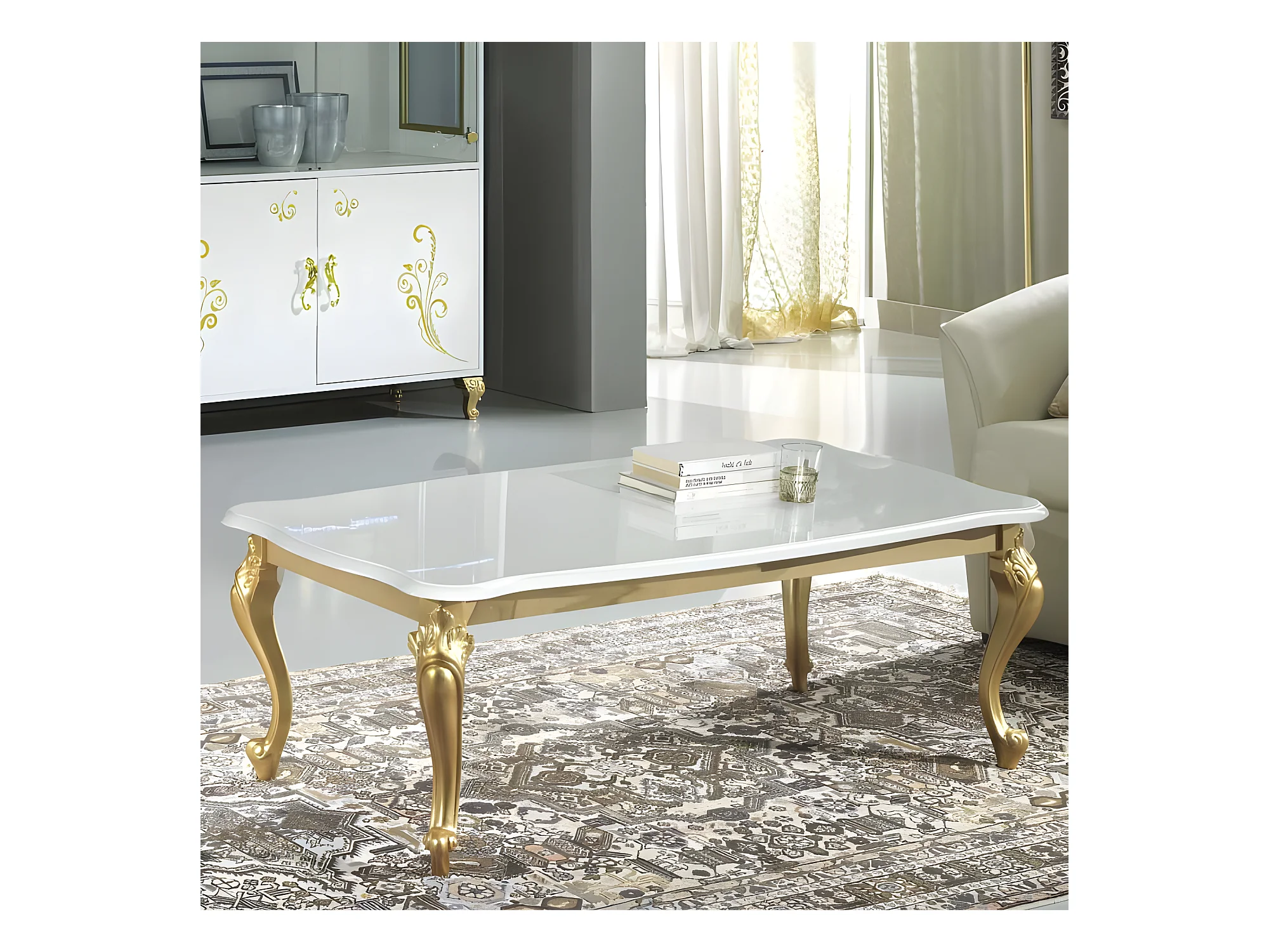Table basse Laque Blanc Brillant / Or - SEBORGA - L 120 x l 68 x H 43 cm