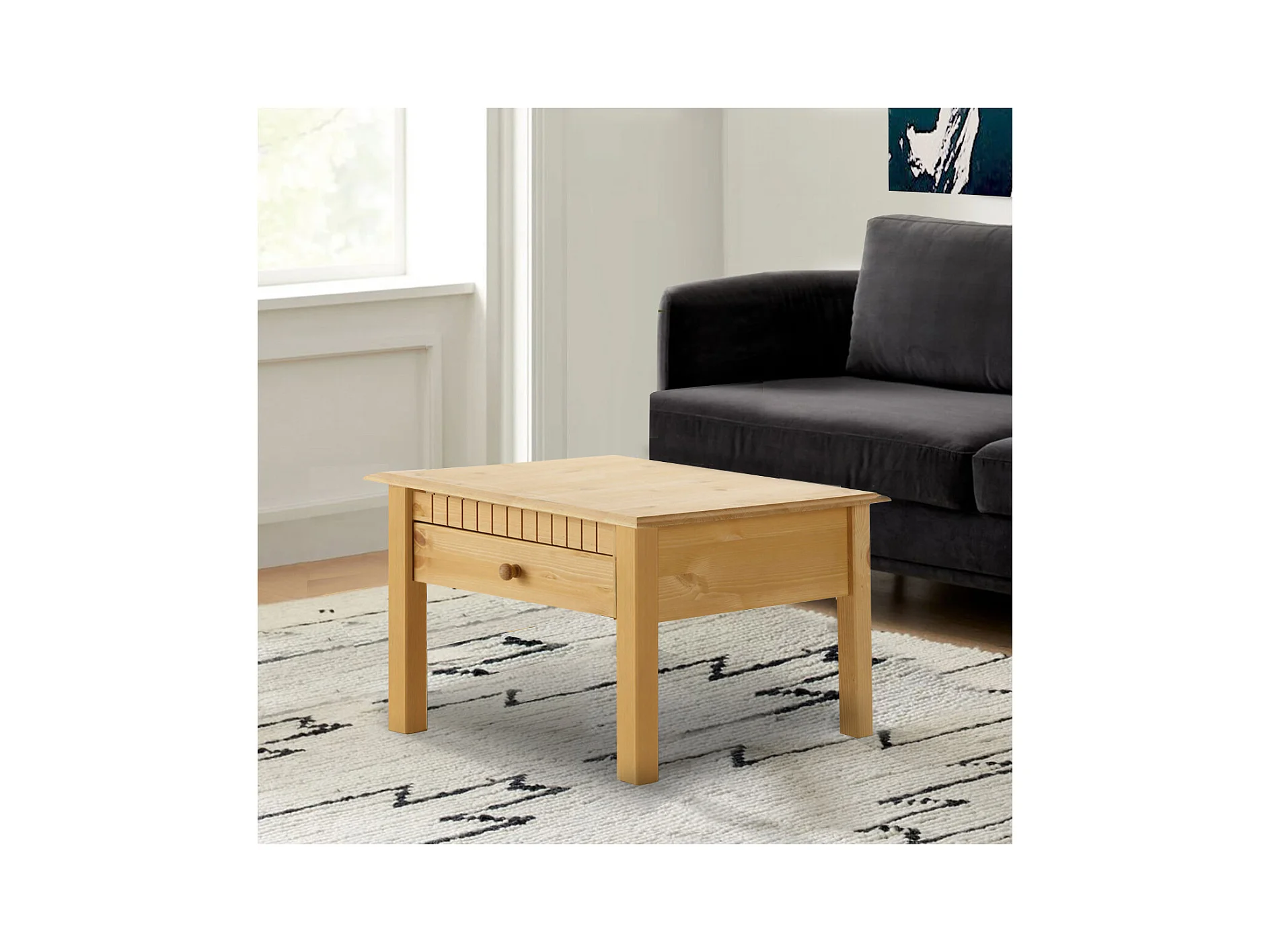 Laura|Table basse avec 1 tiroir en pin