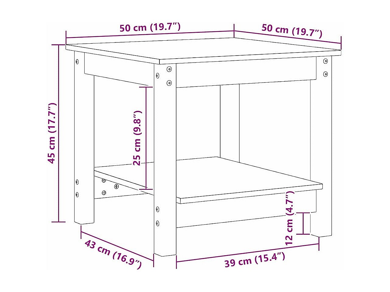 Table basse Marron cire 50 x 50 x 45 cm Bois massif en pin