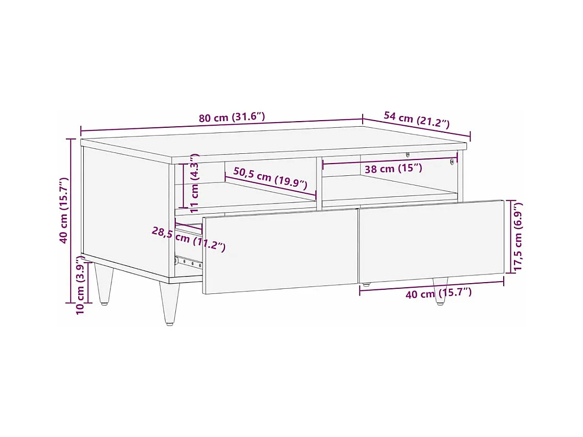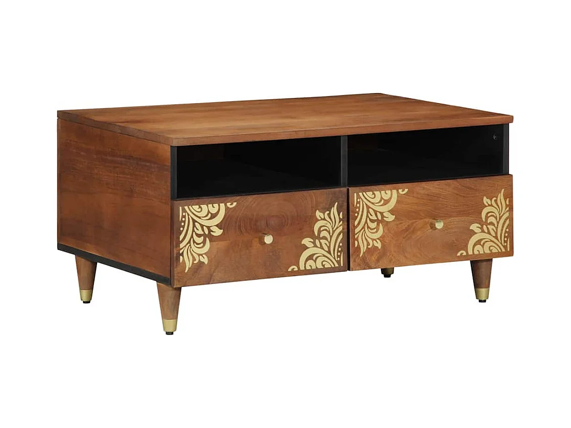Table basse marron miel 80 x 54 x 40 cm bois de manguier massif