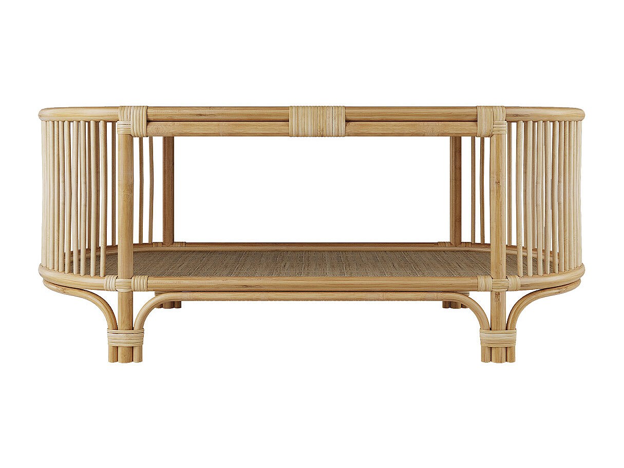 Table basse avec étagères en rotin naturel - Marthe