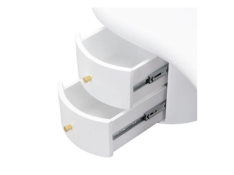 Table basse moderne 97x64x42cm - forme irrégulière - 2 tiroirs - blanc