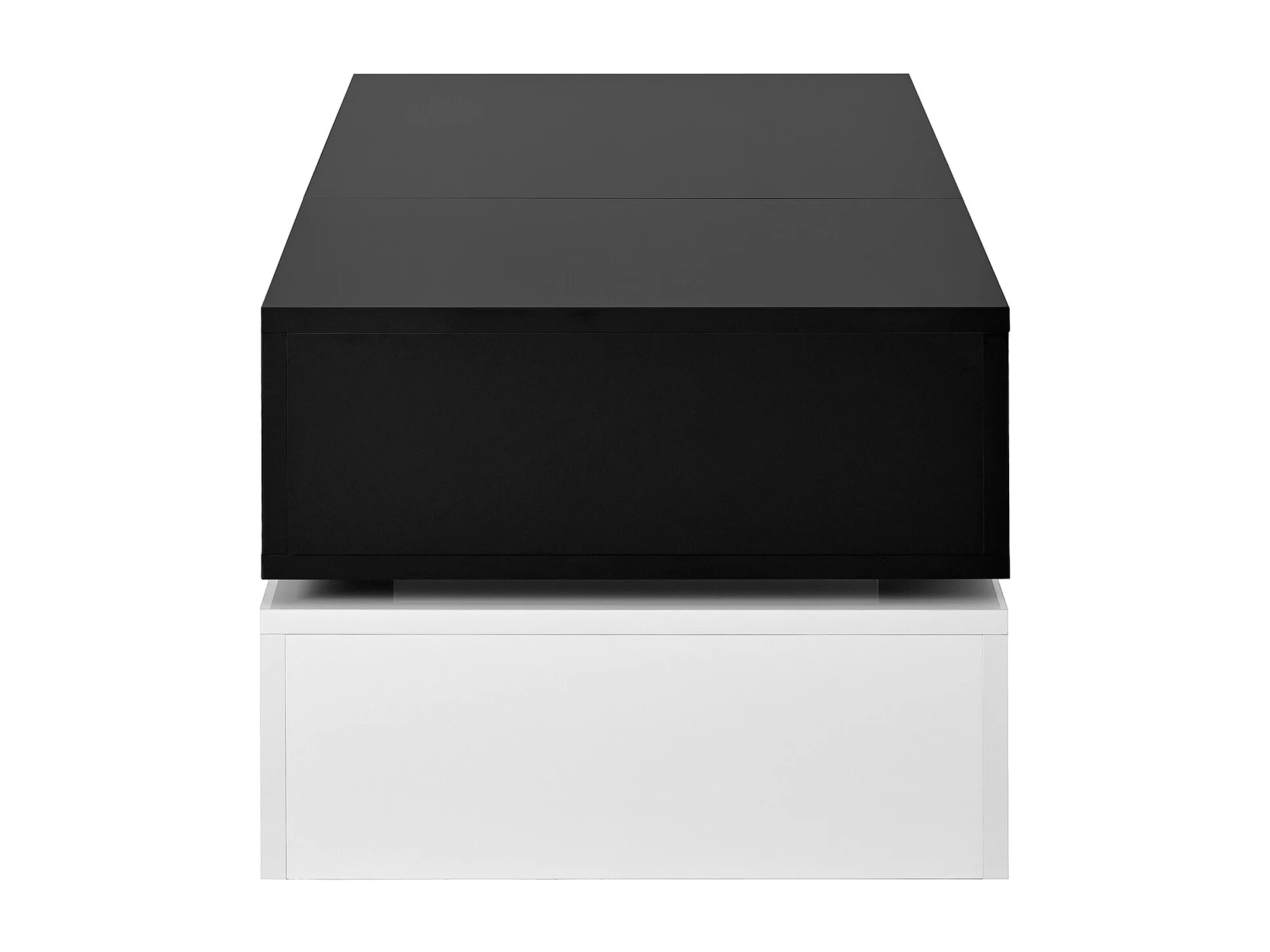 Table basse avec LED, hauteur réglable, stockage, laquée noire et blanche, verre (90x45x35.5 cm)