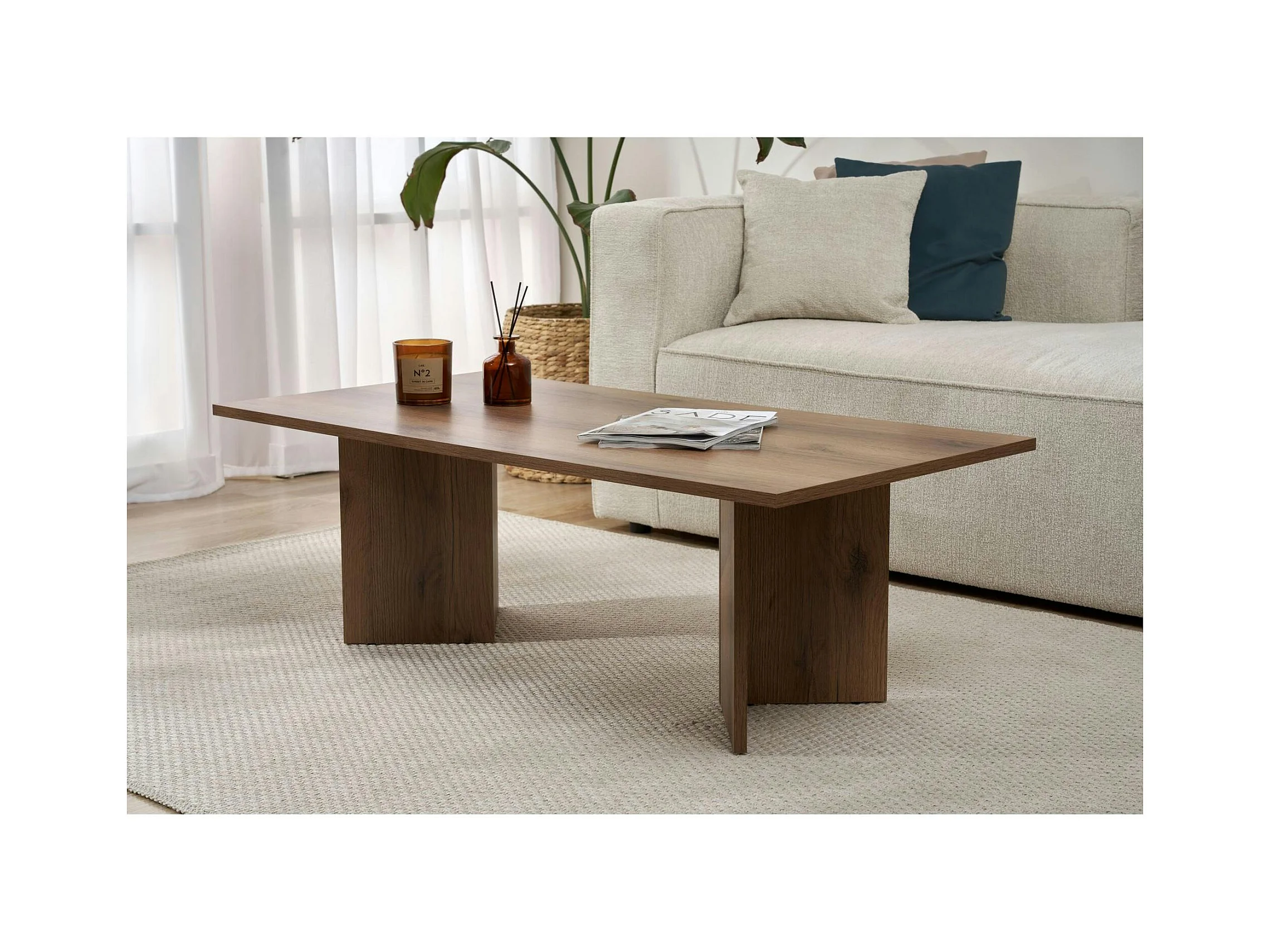 Table basse moderne effet bois de noyer - pieds en V MARFA
