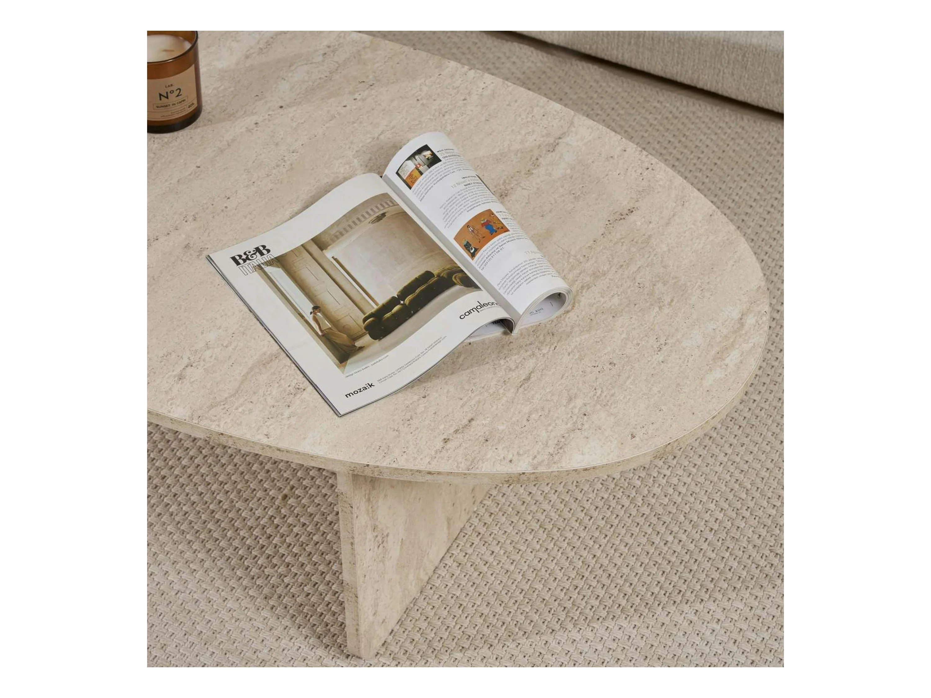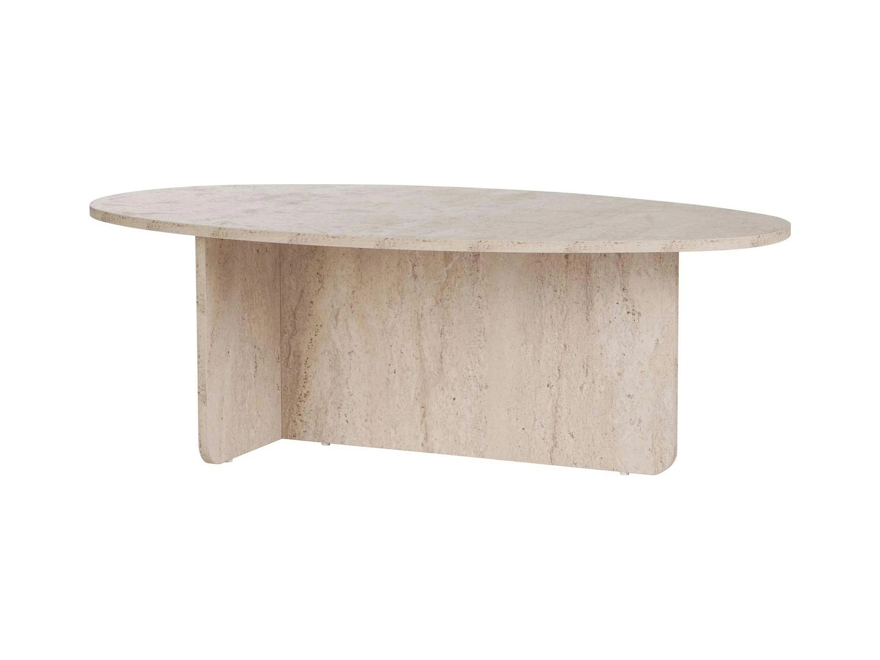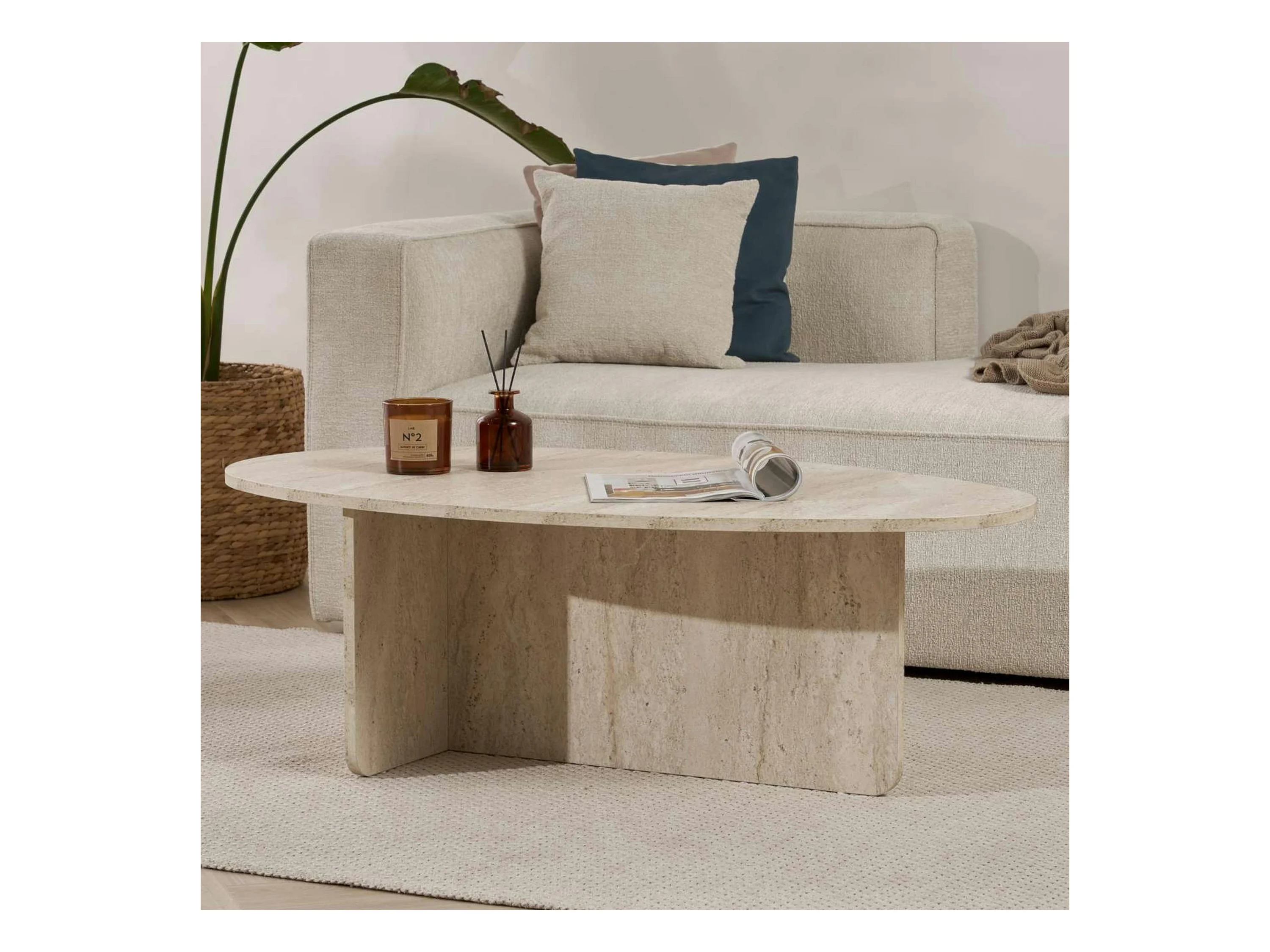 Table basse moderne ovale effet travertin – pied en T MARFA