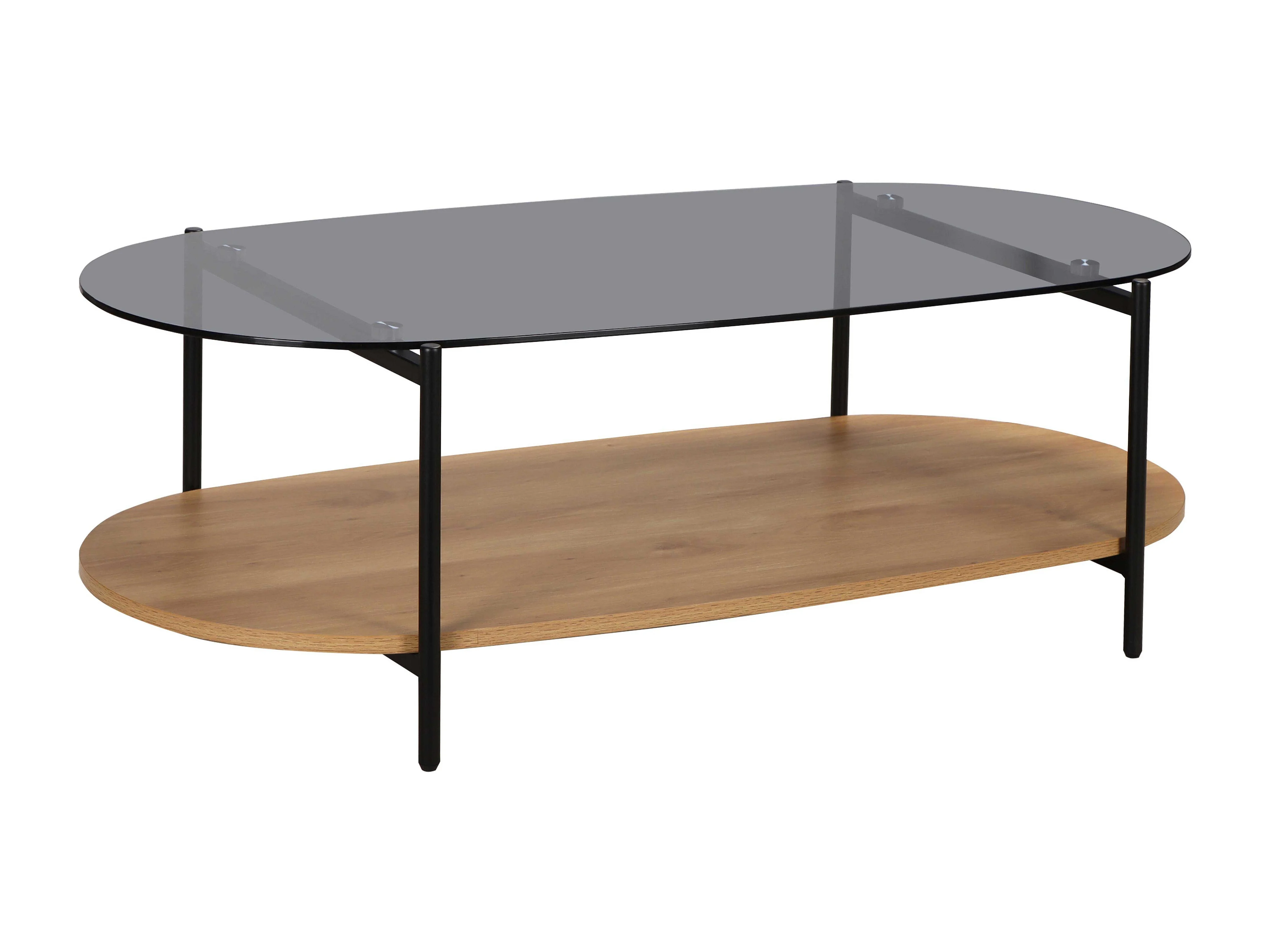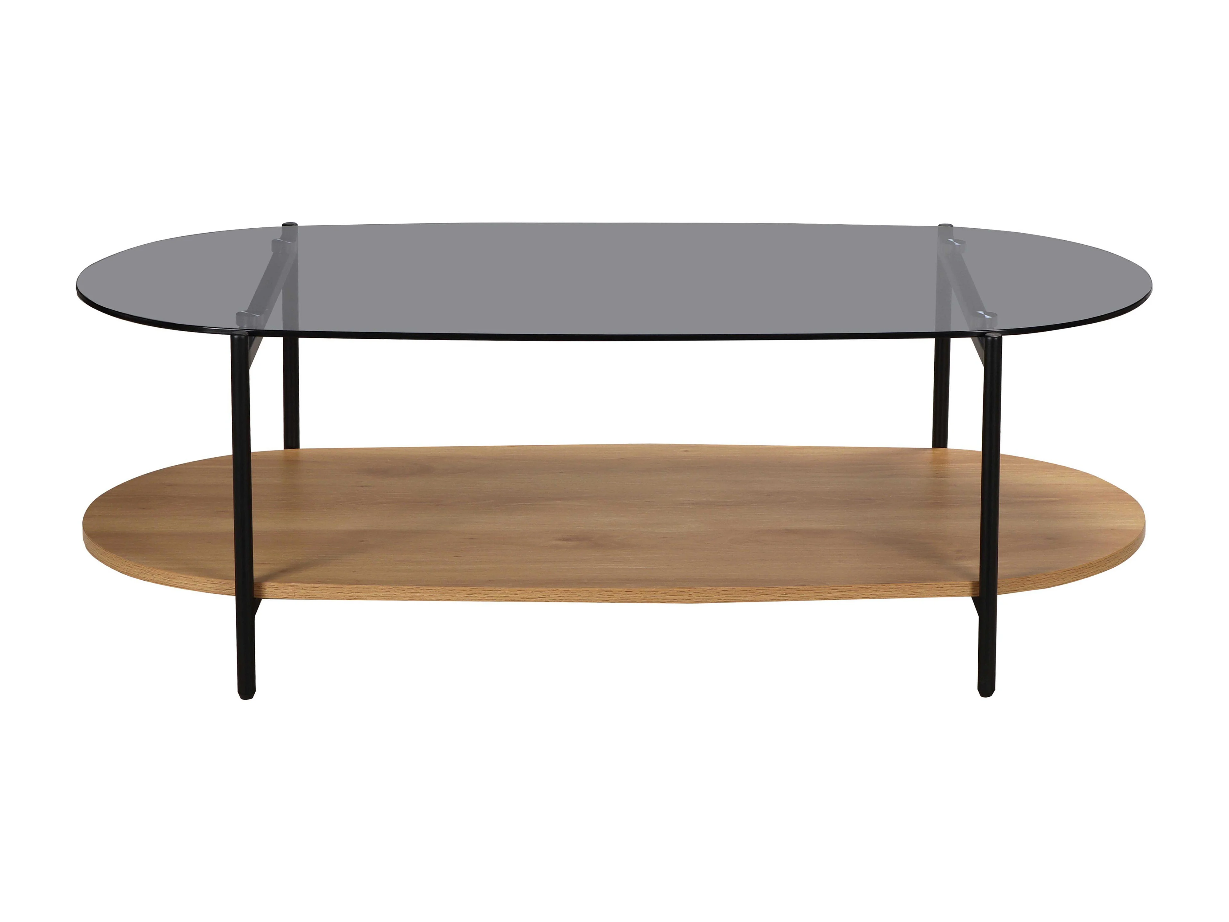 Table basse moderne ovale L 120 cm en verre bois clair