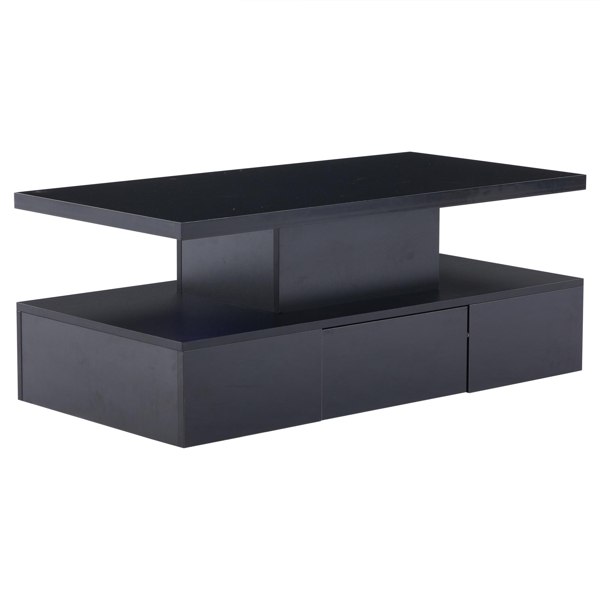 Table basse moderne avec tiroirs et étagères, LED, Noir laqué