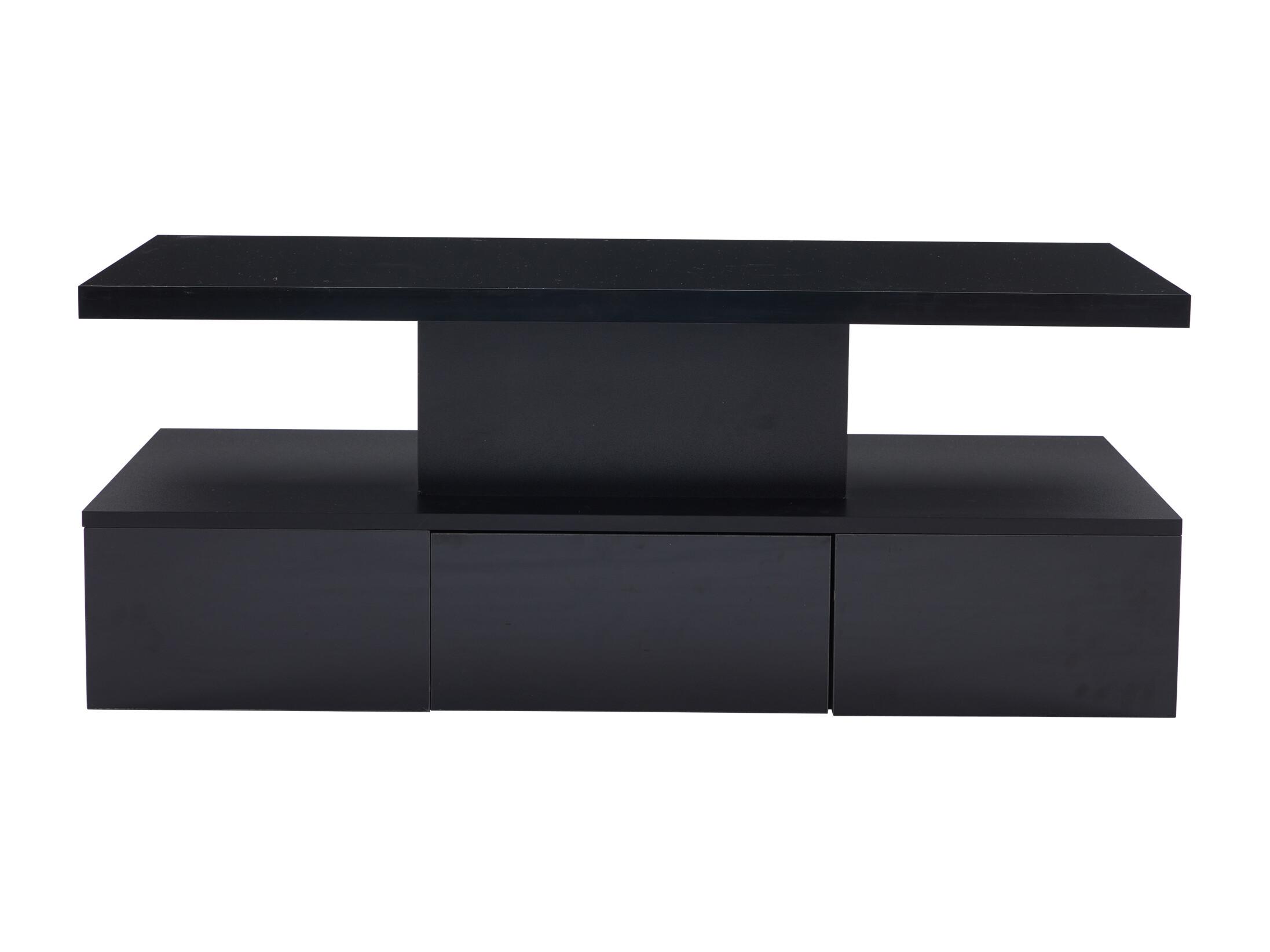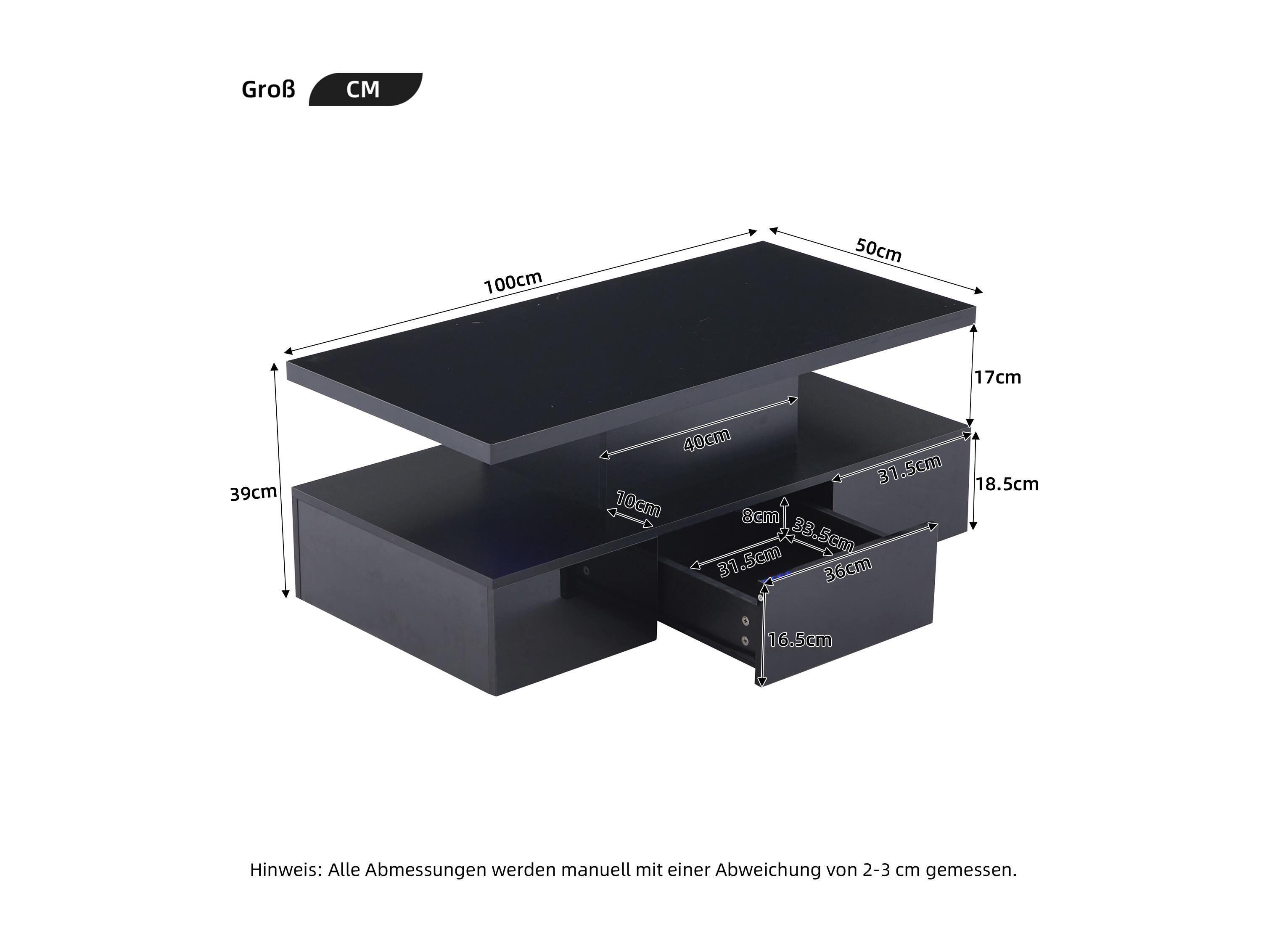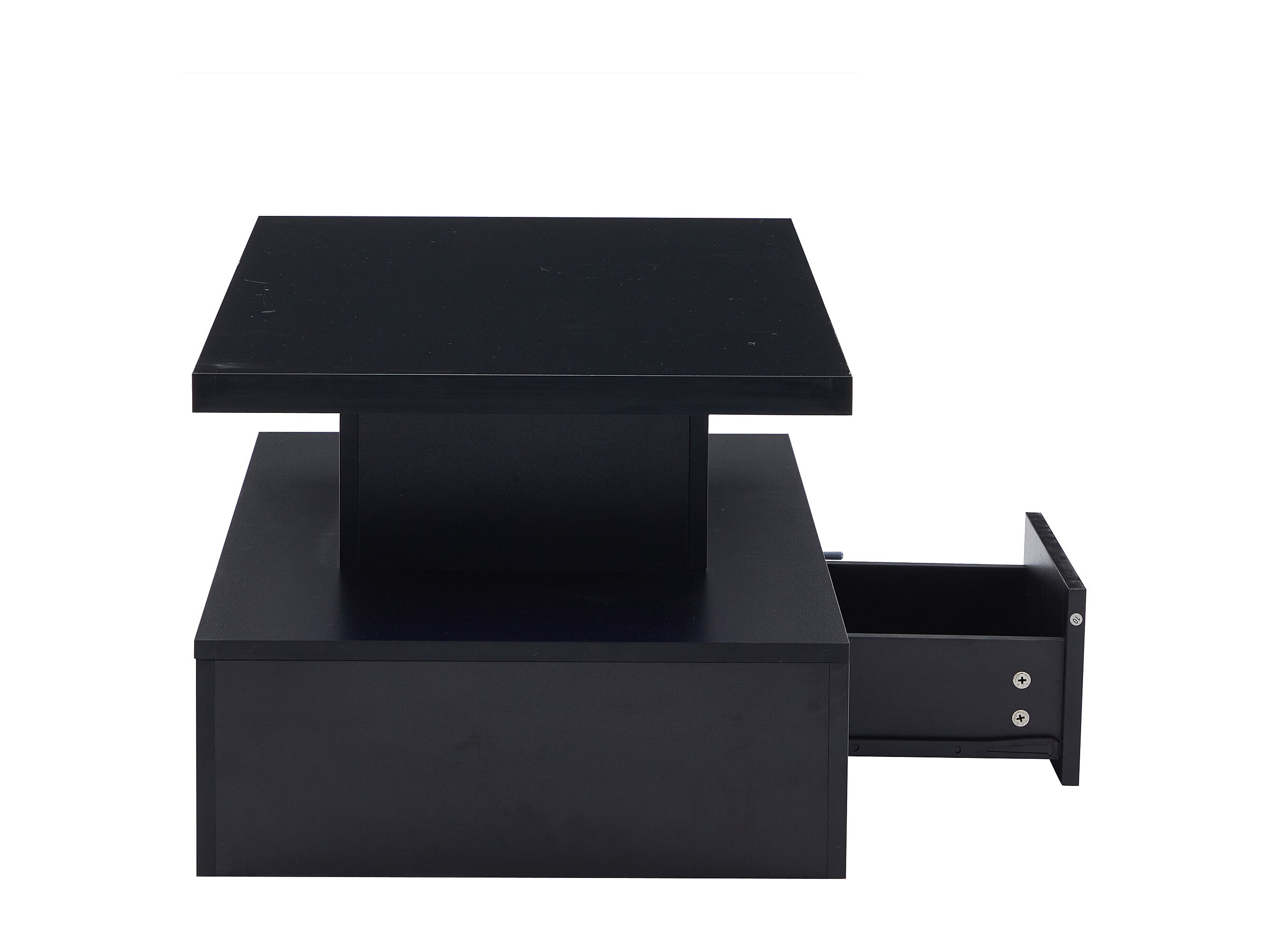 Table basse 100x50x35cm avec 2 tiroir et d'un compartiment semi-ouvert, LED, noir laqué