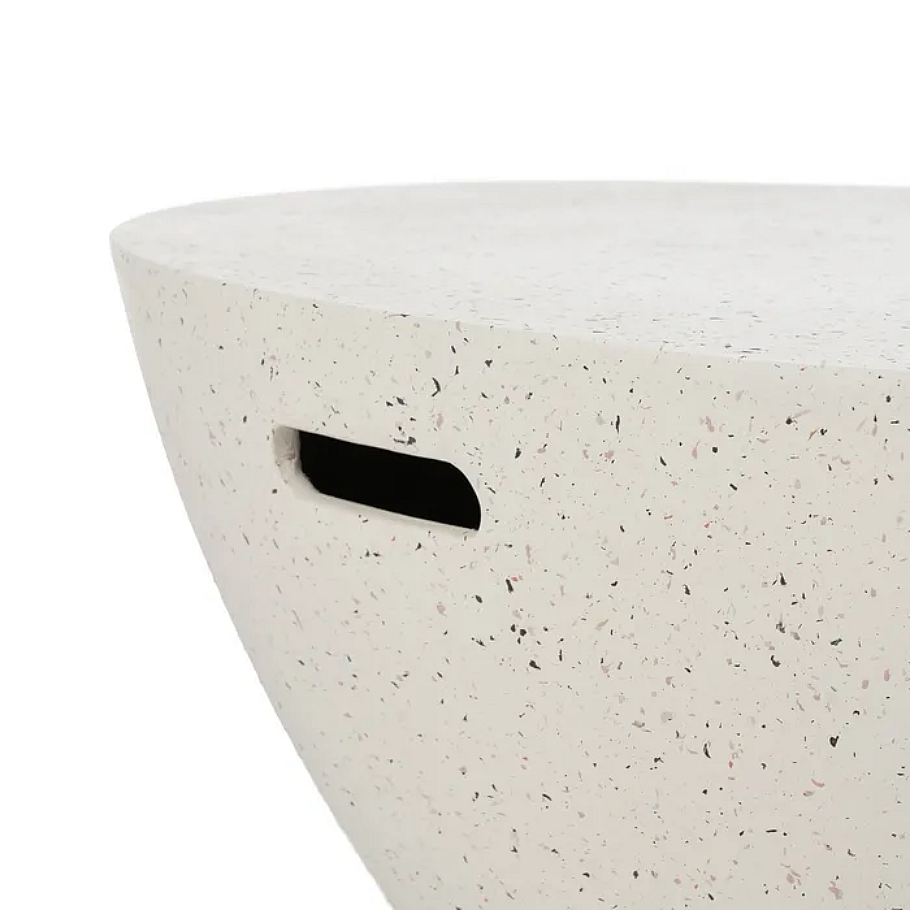 Table basse monolithe magnésium blanc moucheté avec poignées 90 cm FLOREANE