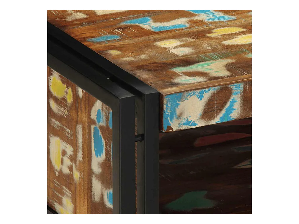 Table basse multicolore 50x50x38 cm bois de récupération massif