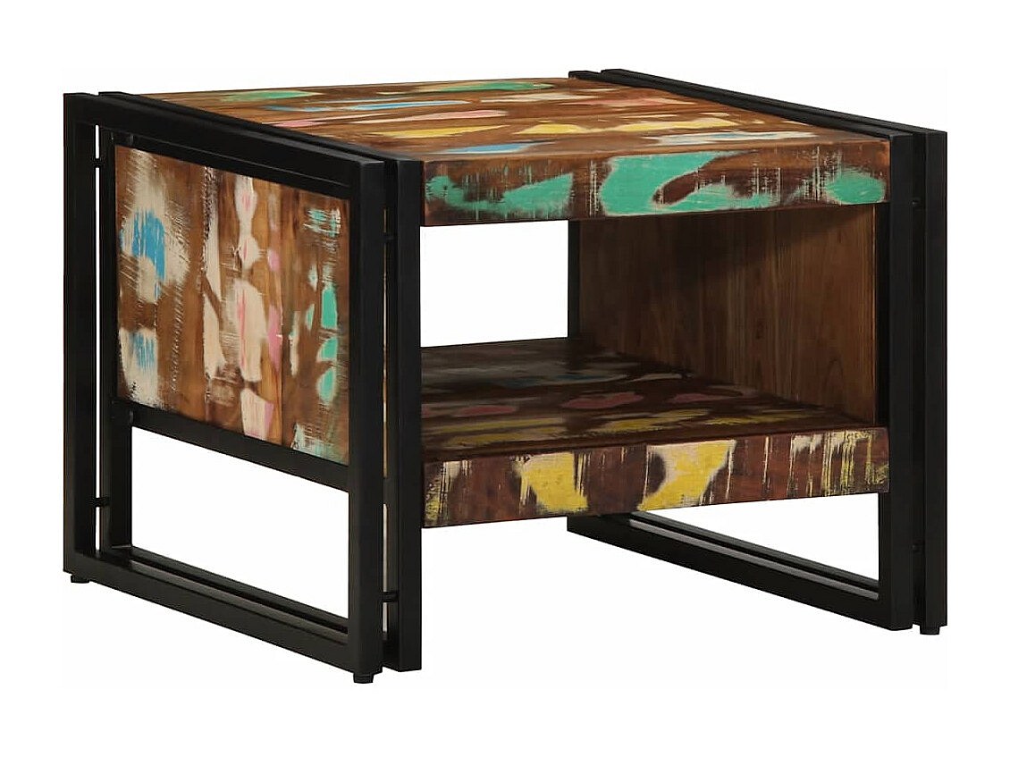 Table basse multicolore 50x50x38 cm bois de récupération massif