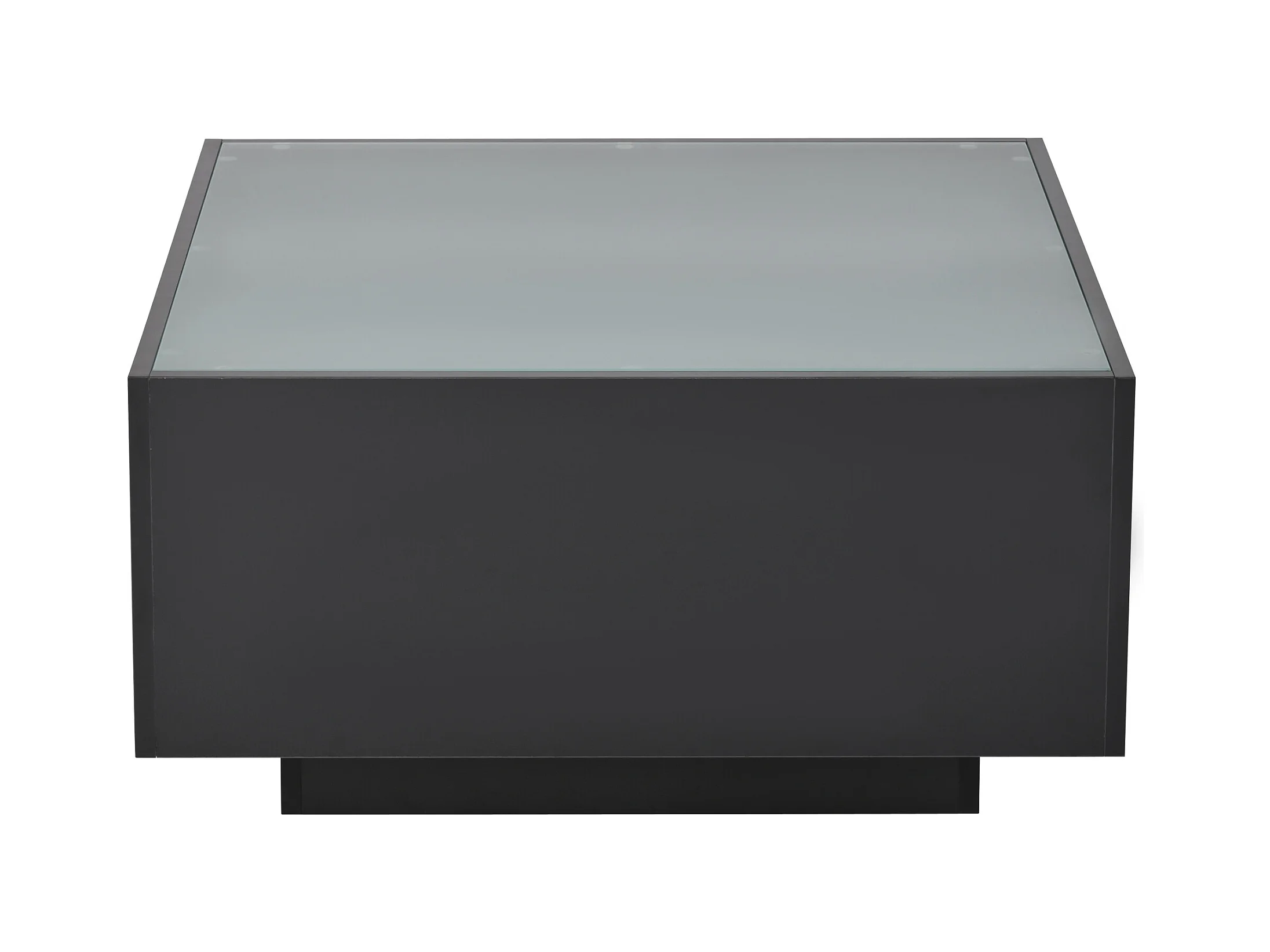 Table basse brillante - 70 x 70 x 36cm - avec plateau en verre + Leds - aggloméré - noir