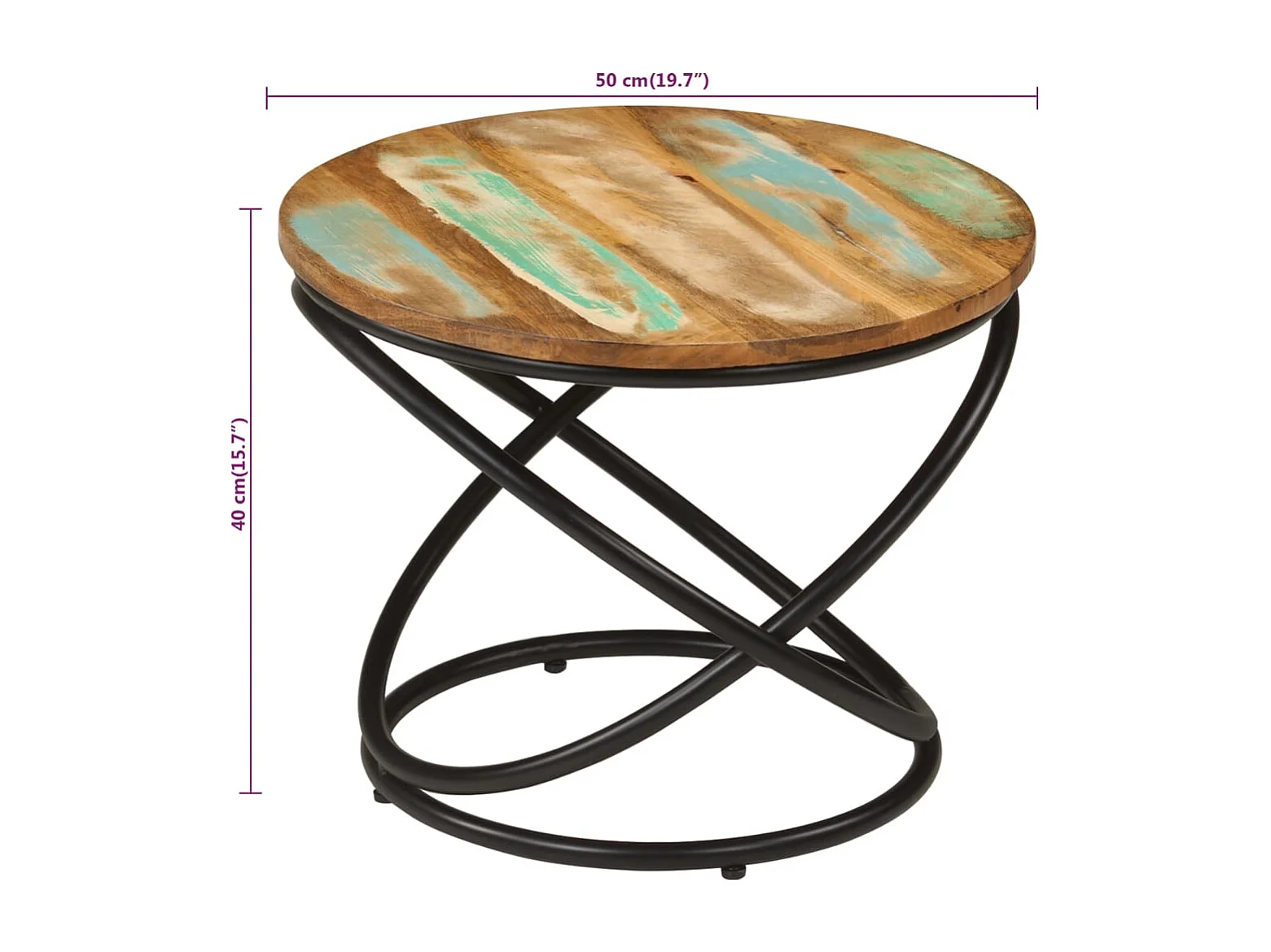 Table basse Ø50x40 cm bois de récupération massif et acier