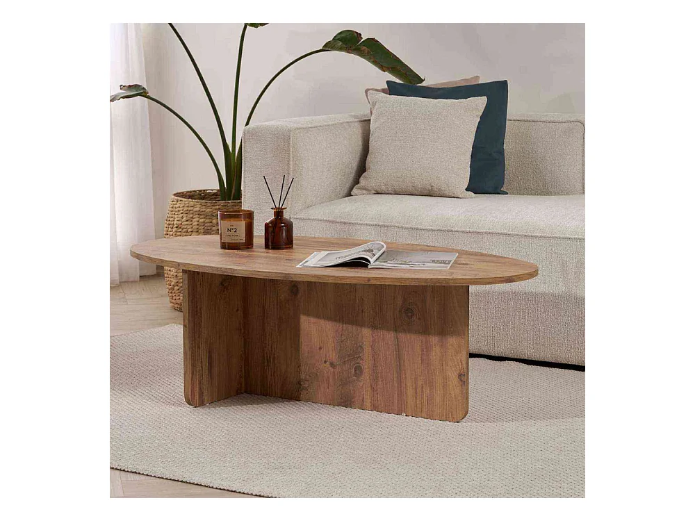 Table basse forme ovoïde L. 50 cm en bois de manguier massif - OCALA