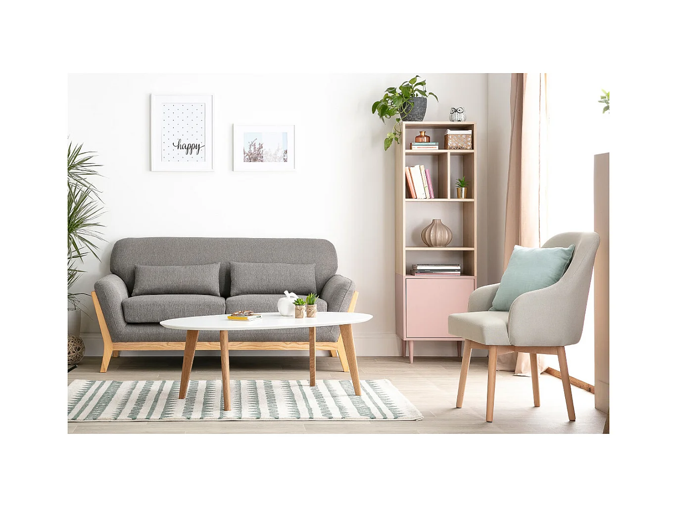 Table basse ovale scandinave blanc et bois clair chêne L120 cm EKKA