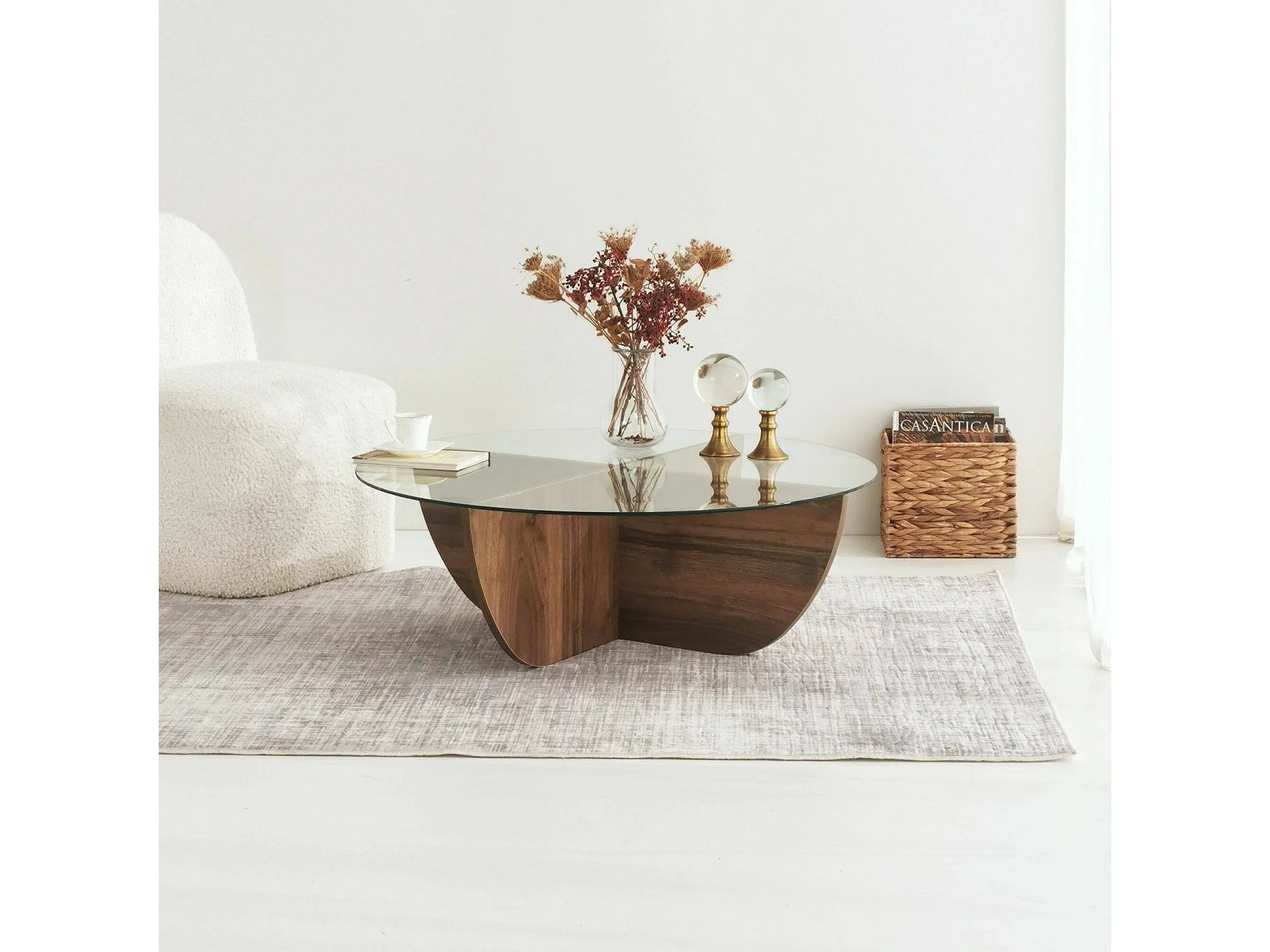 Table basse Phoebe, Table basse, Porte-revues pour canapé, Etagère de salon, 90x90h30 cm, Noyer