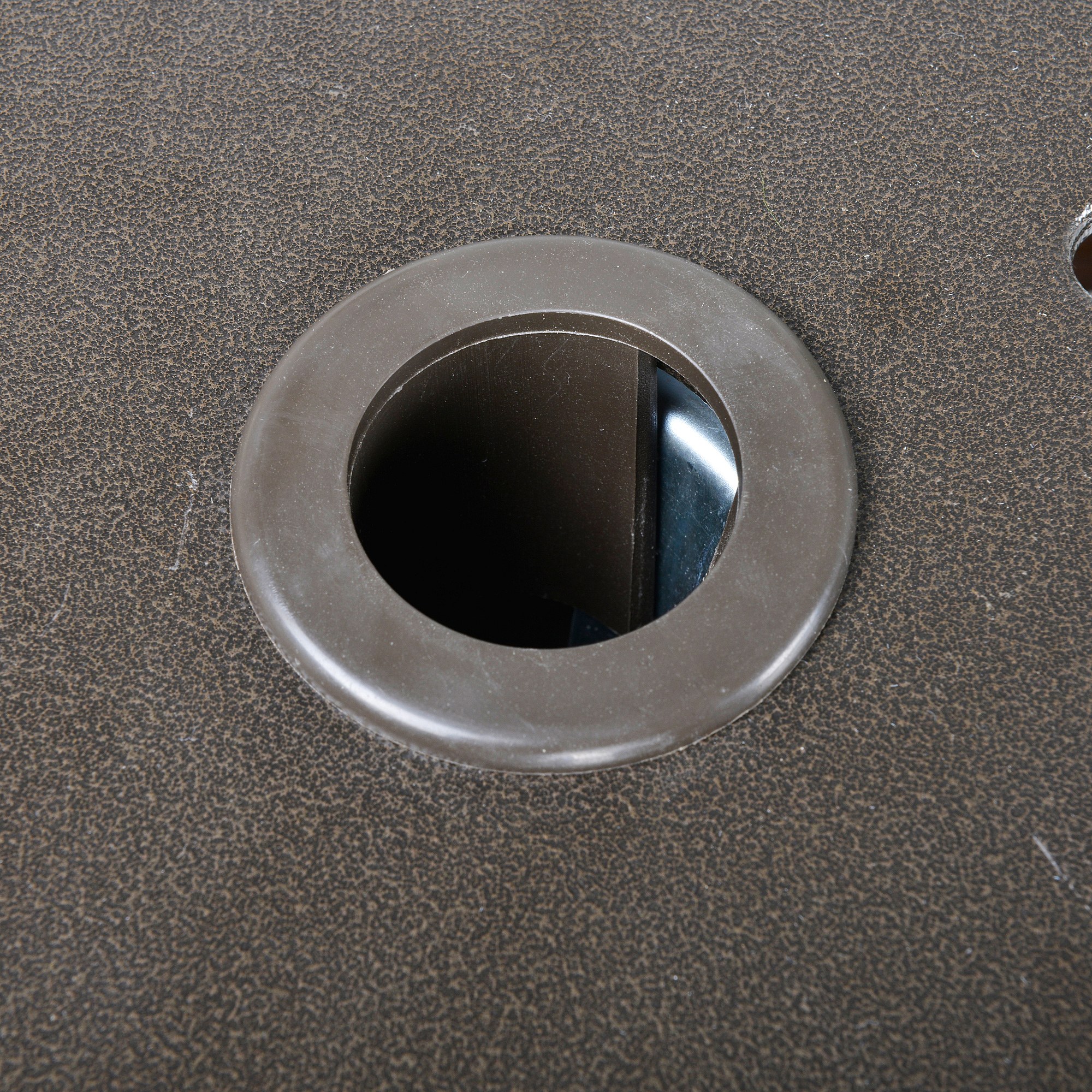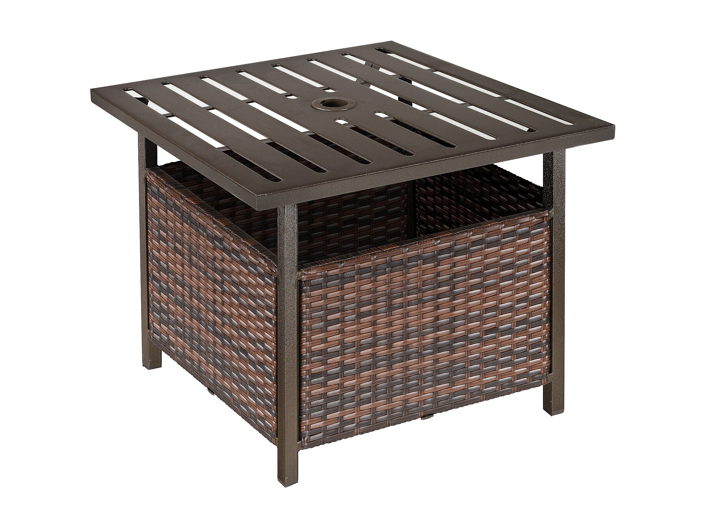 Table basse pied de parasol 2 en 1 résine tressée imitation rotin métal époxy chocolat