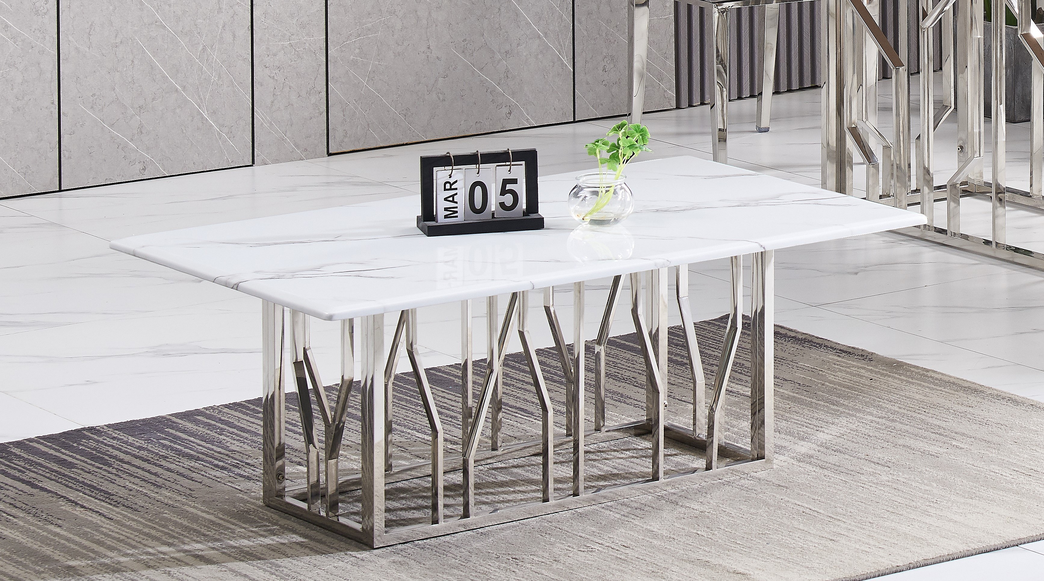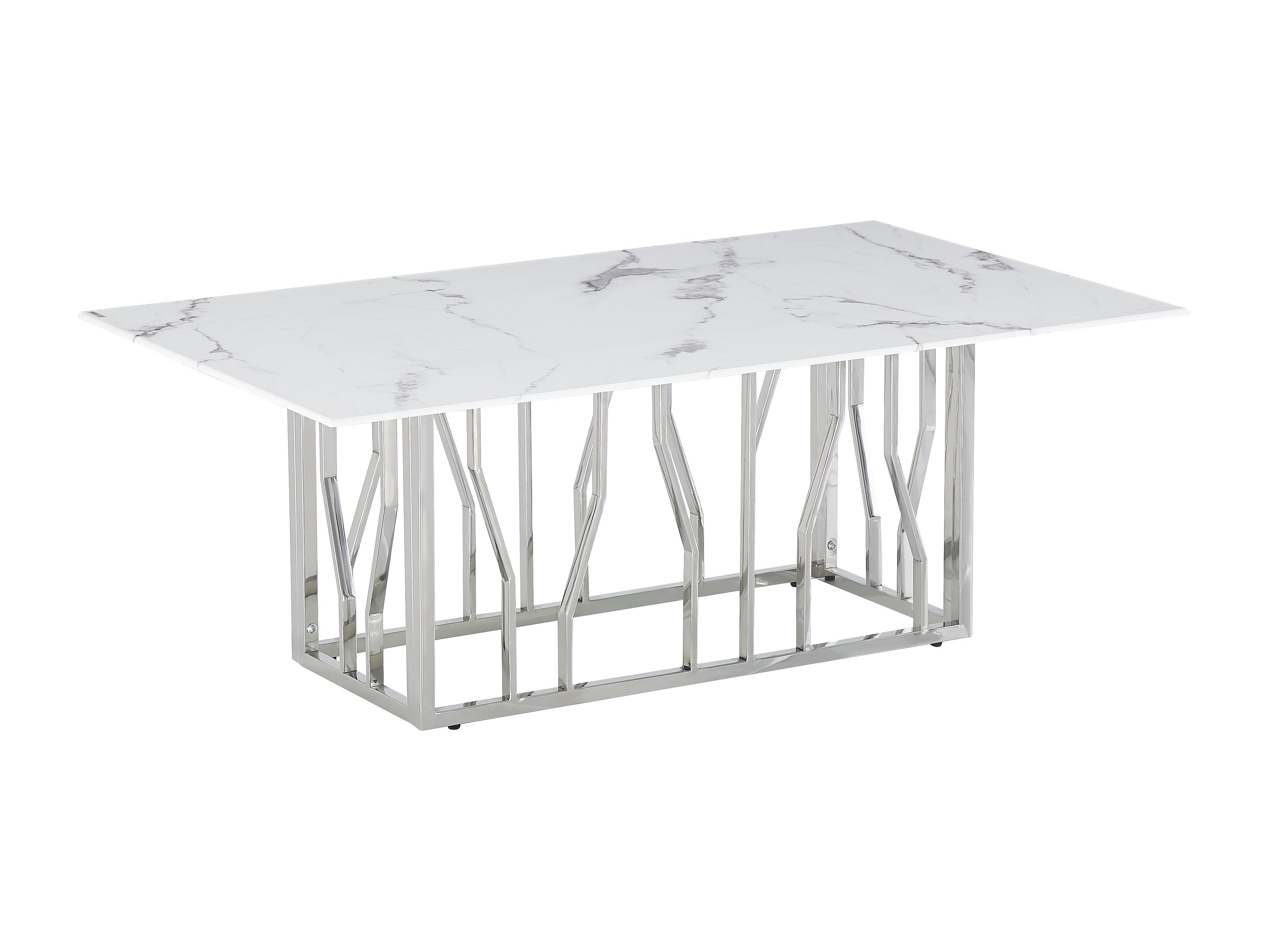 Table Basse PORTOFINO – Chrome & Marbre Blanc – 120x70x45 cm