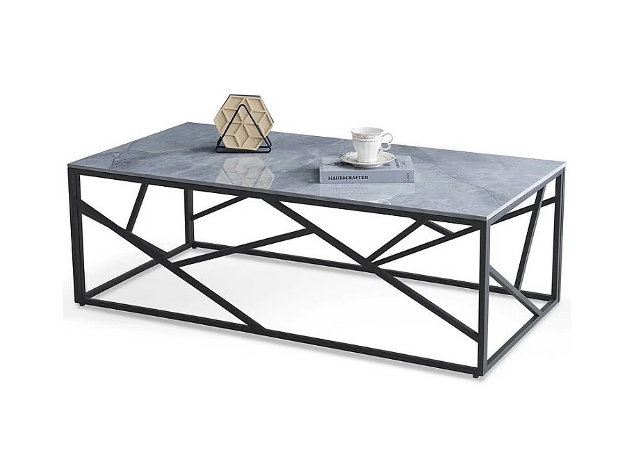 Table basse rectangulaire avec plateau aspect marbre gris YAGO