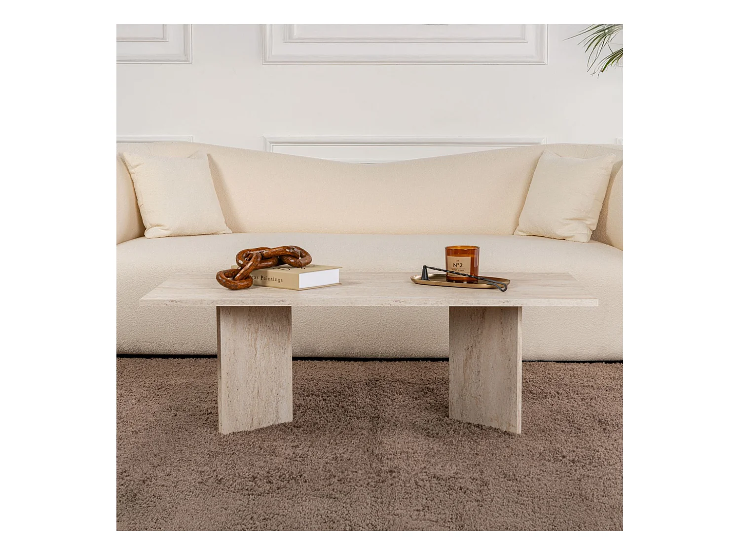 Table basse rectangulaire effet travertin 119x60cm TOPI